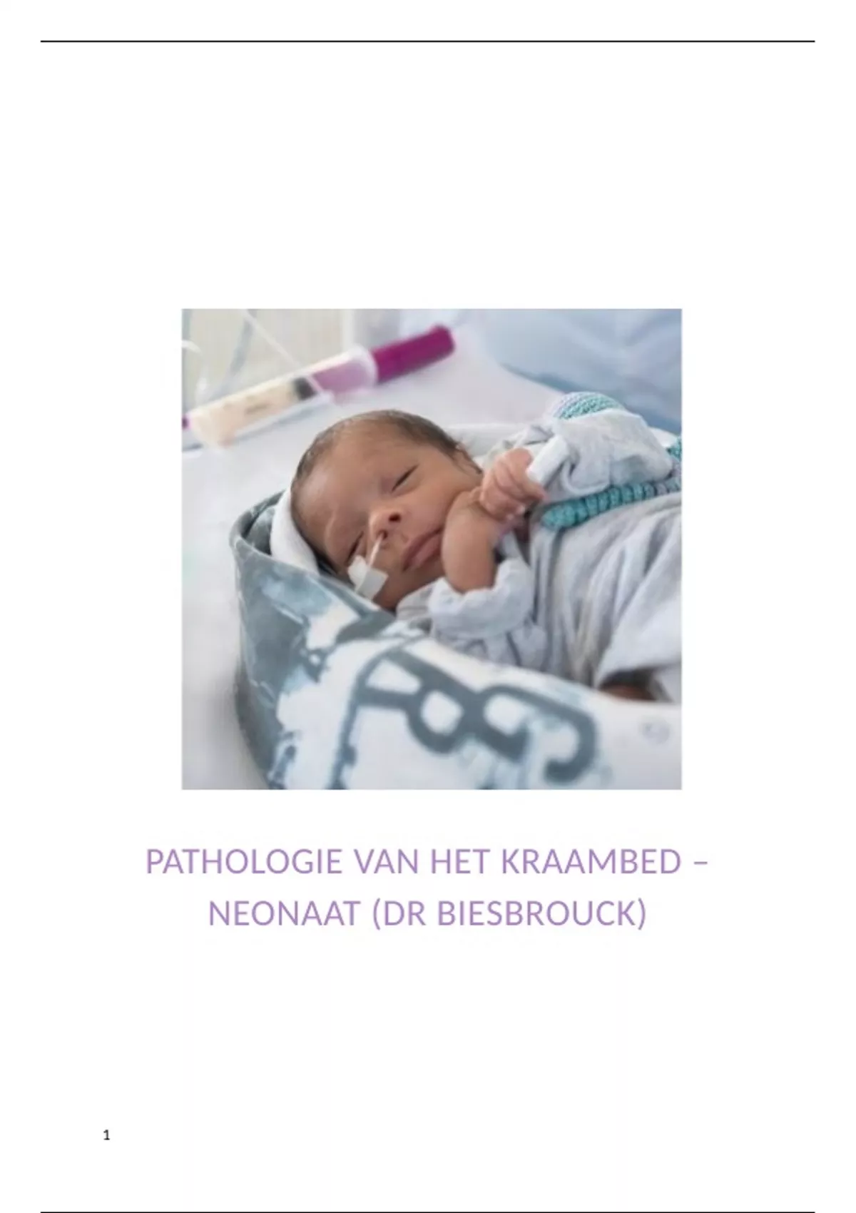 Dit is een volledige samenvatting van het onderdeel 'pathologie van de neonaat' uit de cursus Pathologie van het Kraambed, gegeven in het tweede jaar Vroedkunde aan Hogeschool VIVES. De inhoud is opgesteld op basis van de colleges en PowerPointpresentaties. Dit is het deel van Dr. Biesbrouck.
