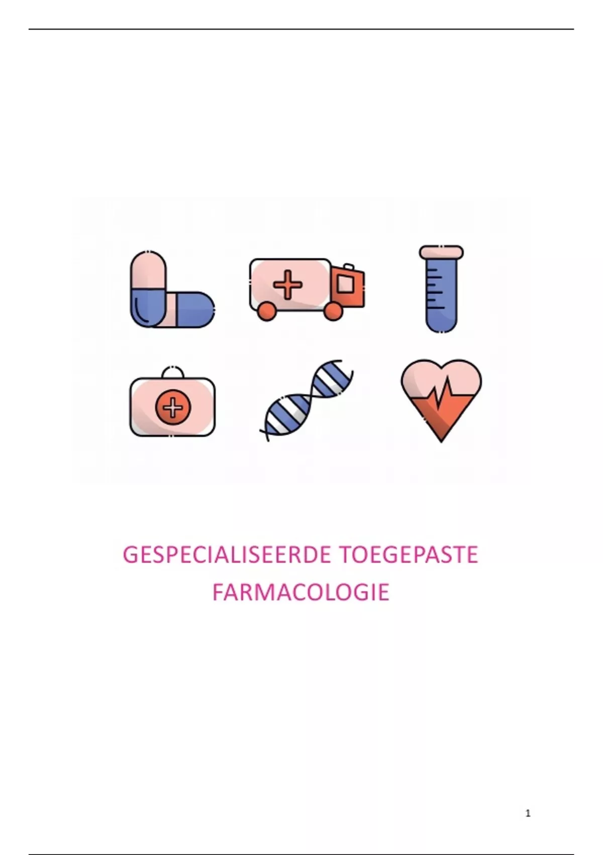 Dit is een volledige samenvatting van Gespecialiseerde toegepaste farmacologie, gegeven in het tweede jaar Vroedkunde aan Hogeschool VIVES. De inhoud is opgesteld op basis van de colleges en PowerPointpresentaties. De samenvatting bevat zowel het deel van de cursus, als het ander deel dat alleen uit powerpoint bestaat.