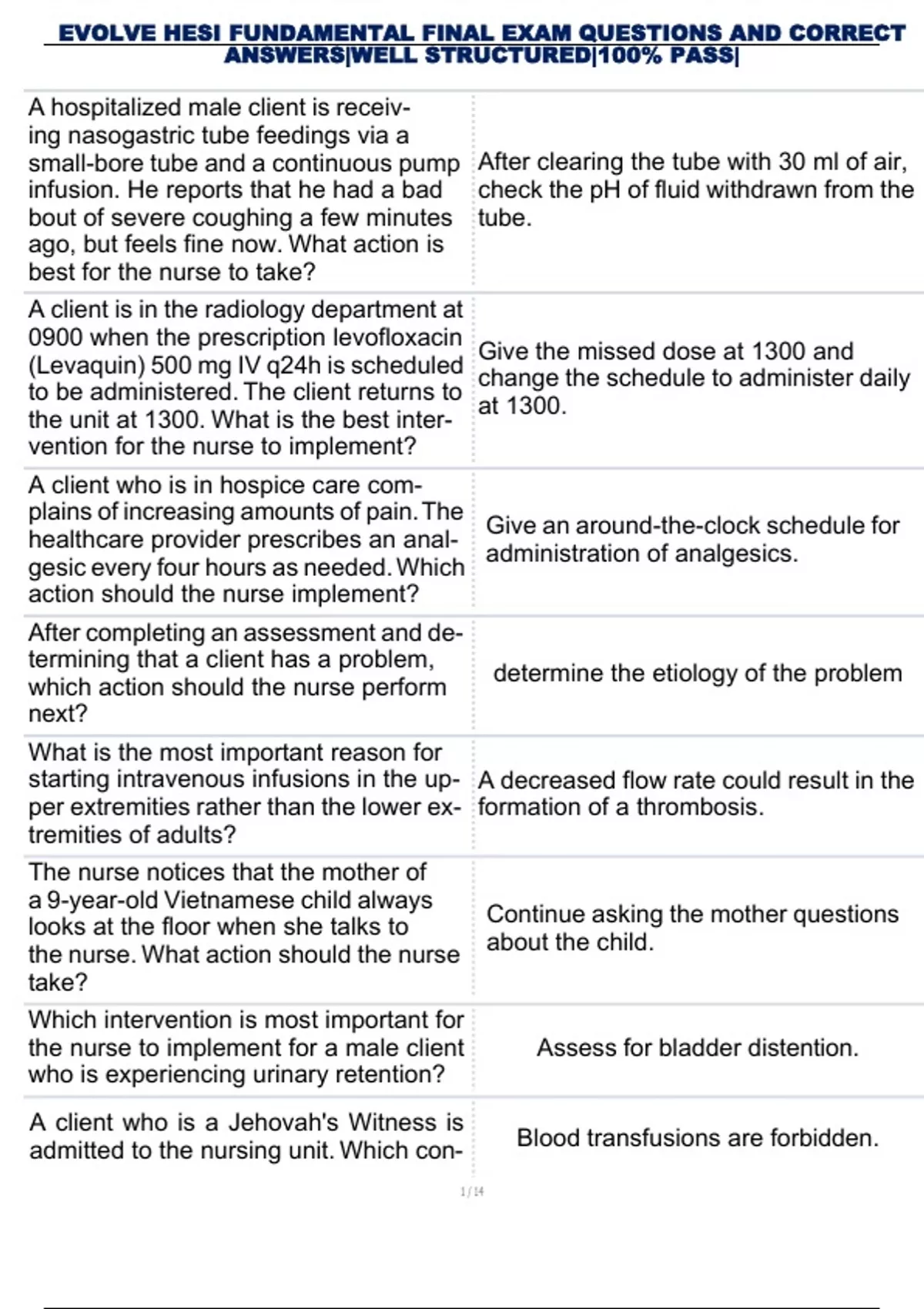 , EVOLVE HESI FUNDAMENTAL FINAL EXAM QUESTIONS AND CORRECT