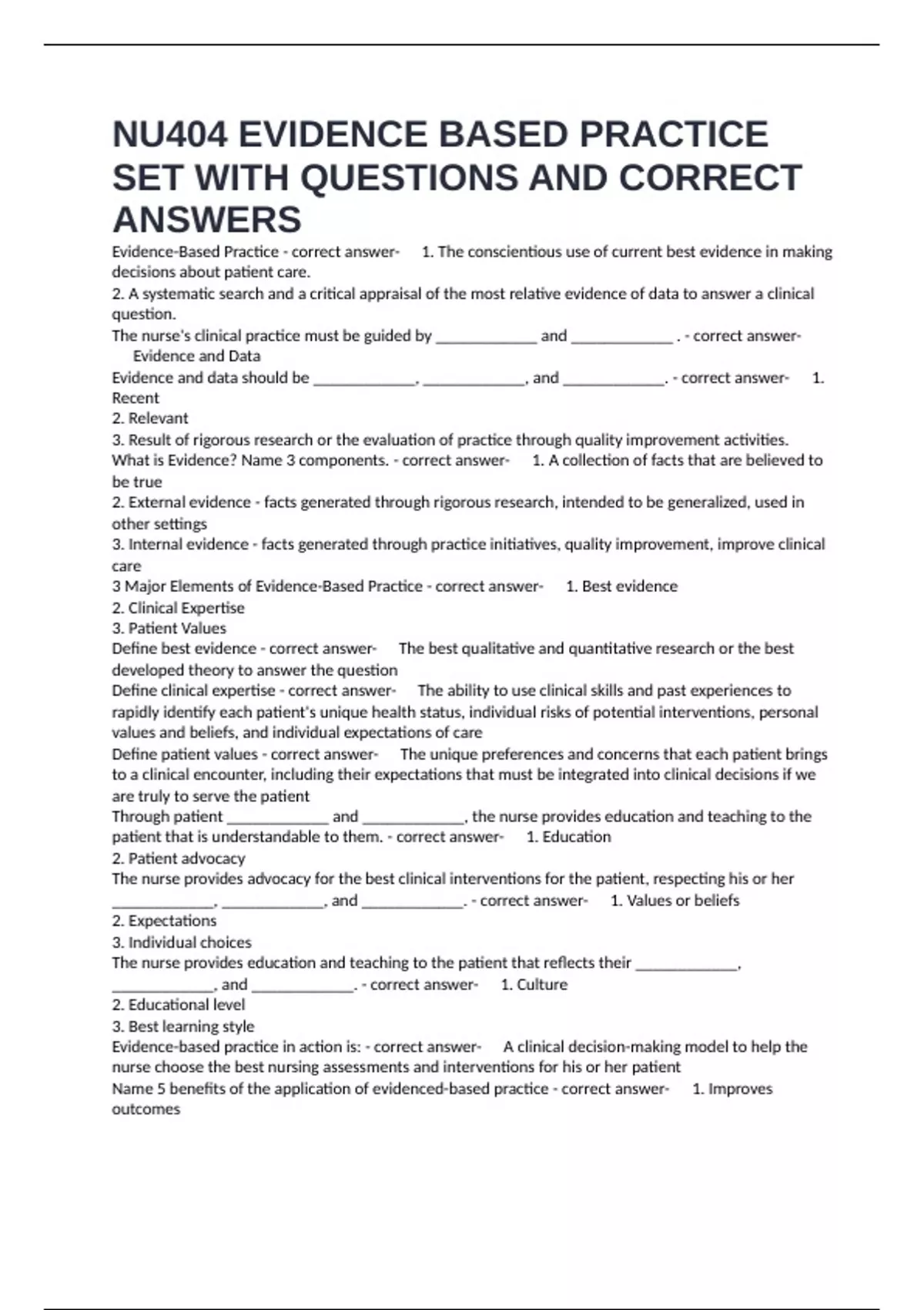 Evidence-Based Practice - correct answer-✅1. The conscientious use of current best evidence in making