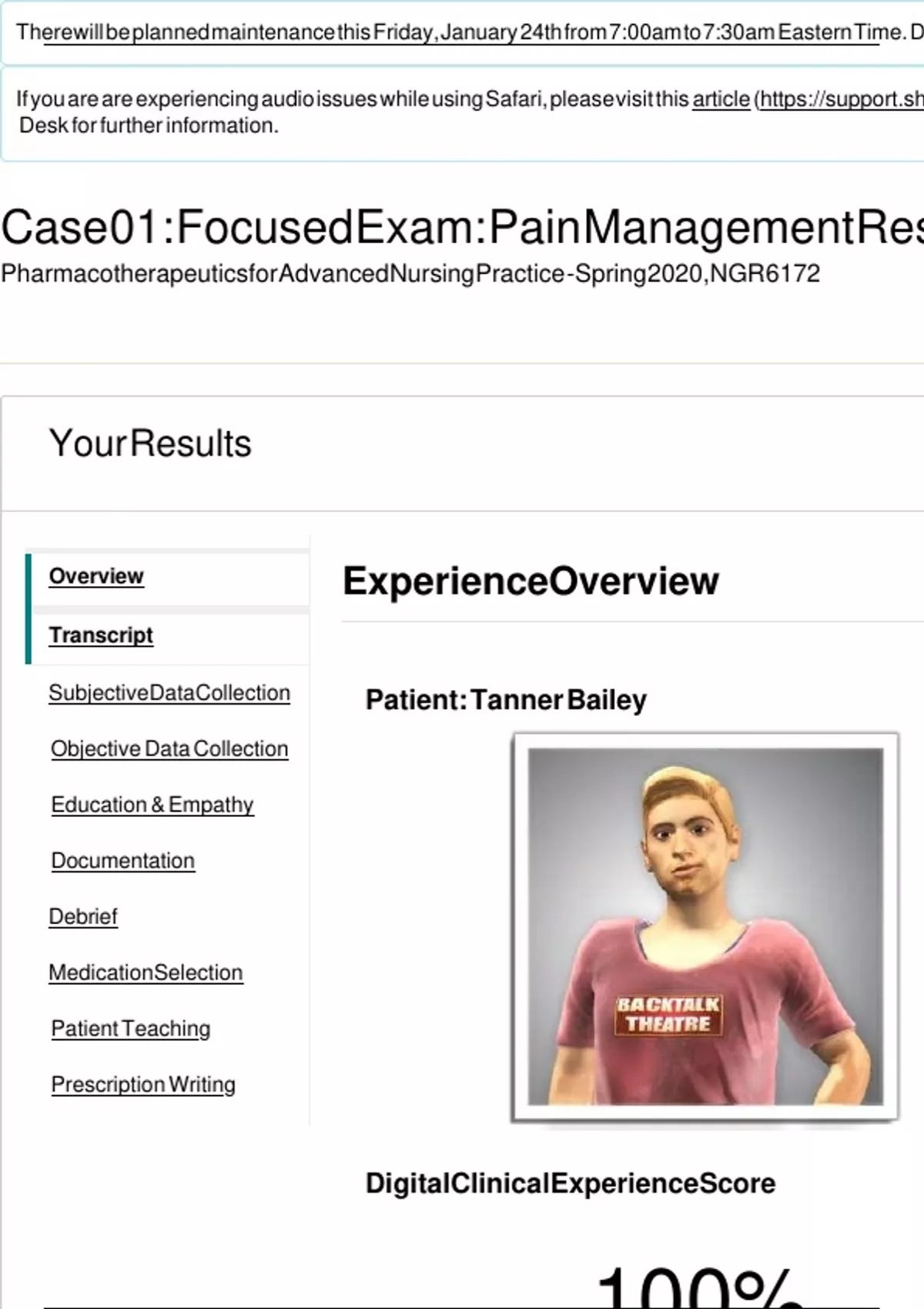 Tanner Bailey Pain Management Shadow Health Focuse