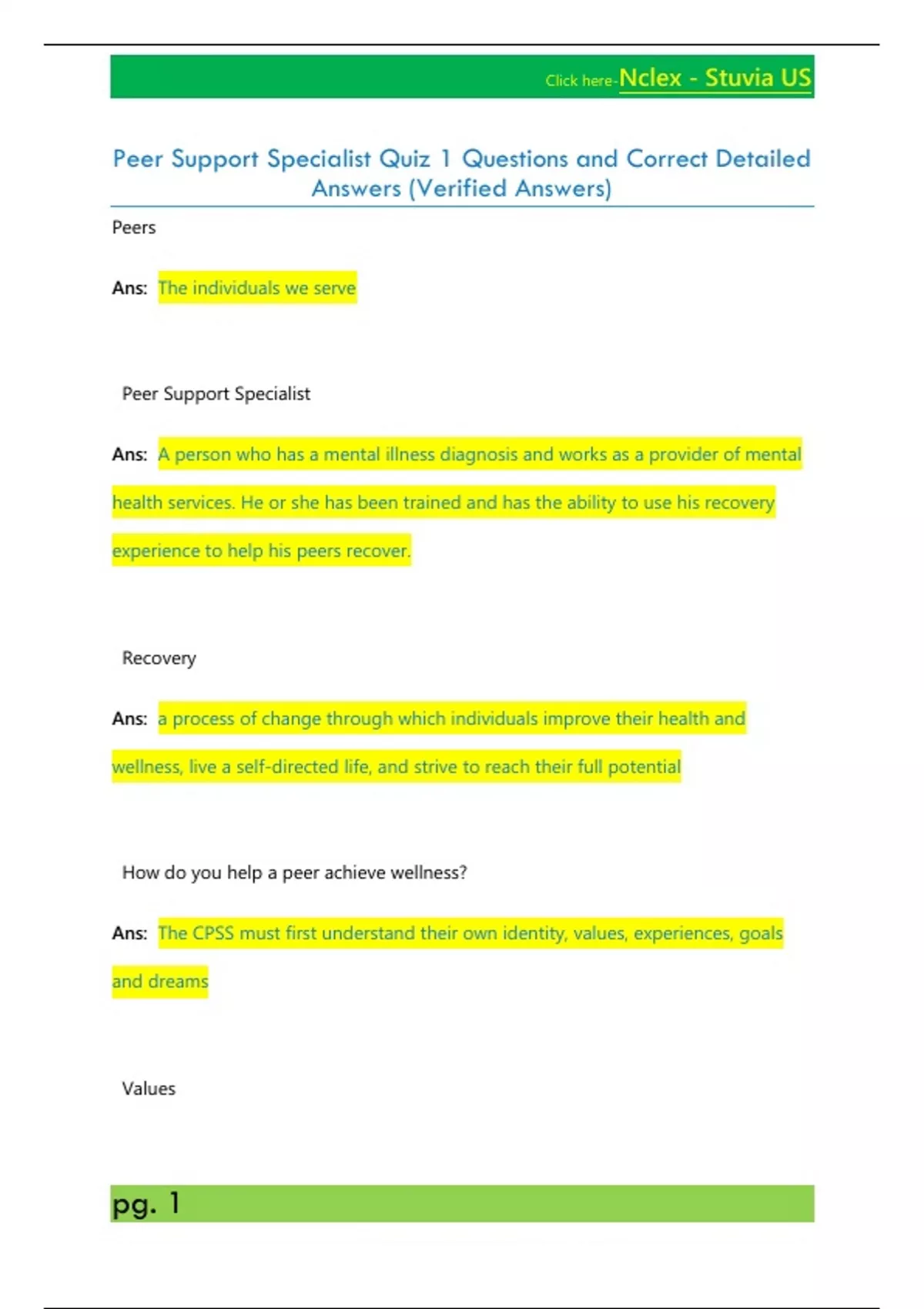 Peer Support Specialist Quiz 1 Questions and Correct Detailed