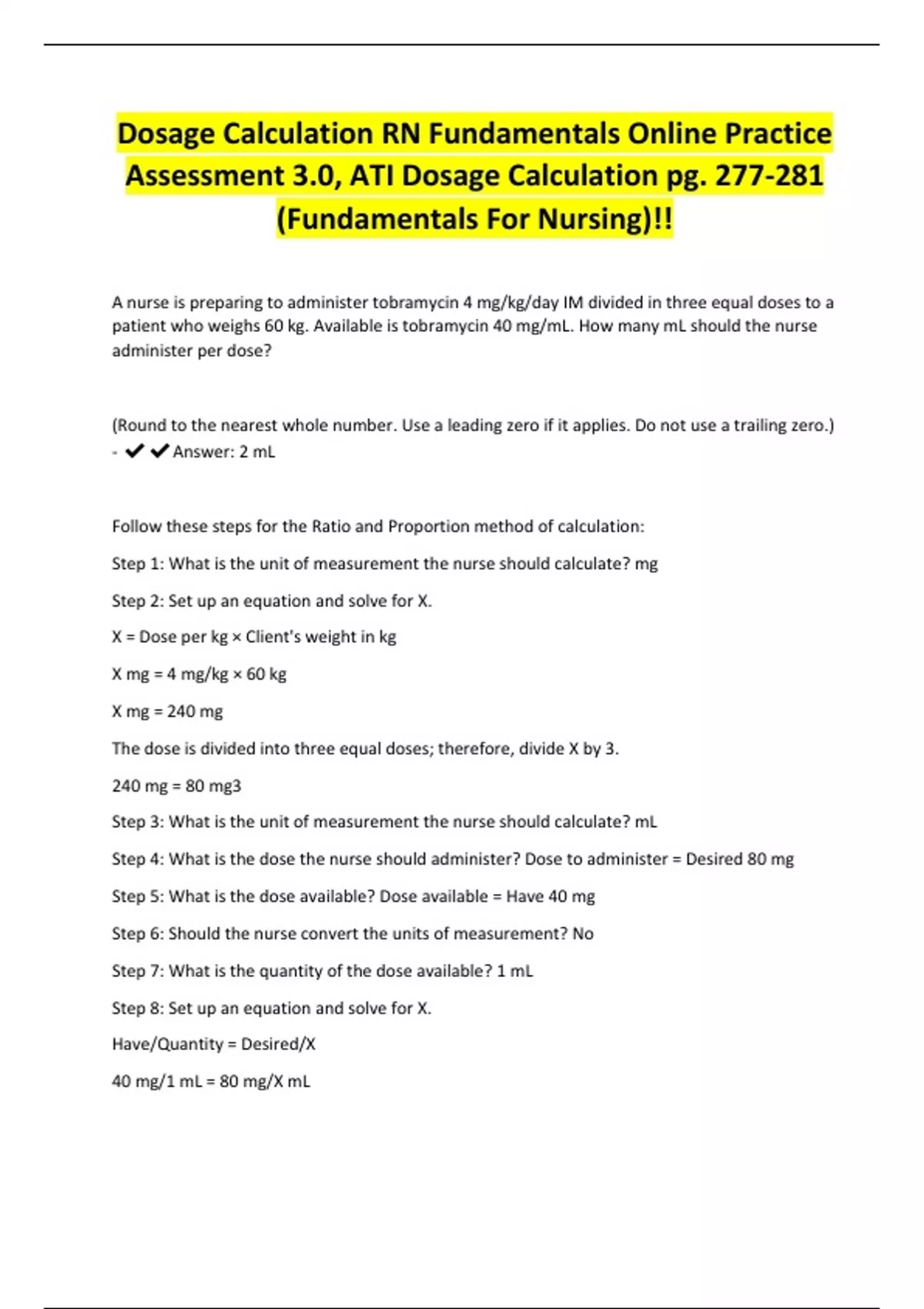 Assessment 3.0, ATI Dosage Calculation pg. 277-281