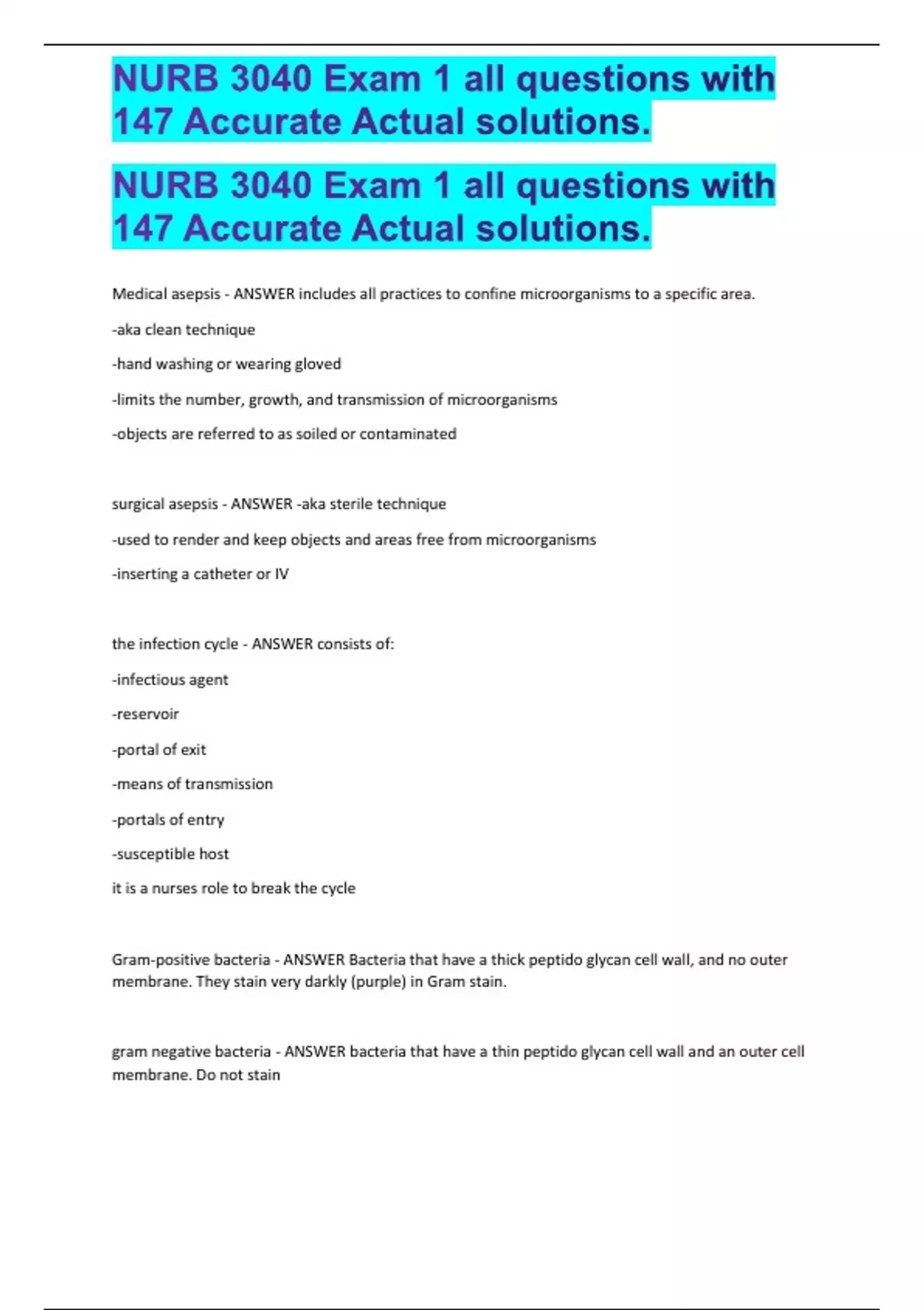 NURB 3040 Exam 1 all questions with 147 Accurate Actual solutions. NURB 3040 Exam 1 all questions with 147 Accurate Actual solutions. NURB 3040 Exam 1 all questions with 147 Accurate Actual solutions. NURB 3040 Exam 1 all questions with 147 Accurate Actual solutions.