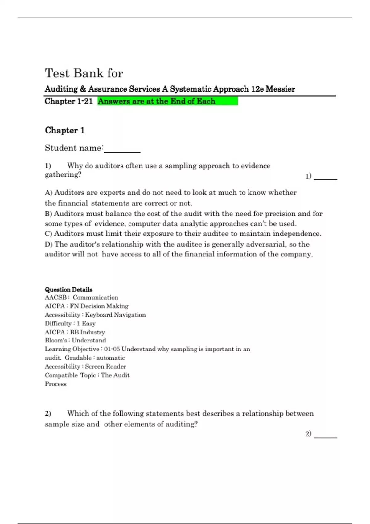 Auditing & Assurance Services A Systematic Approach 12e Messier