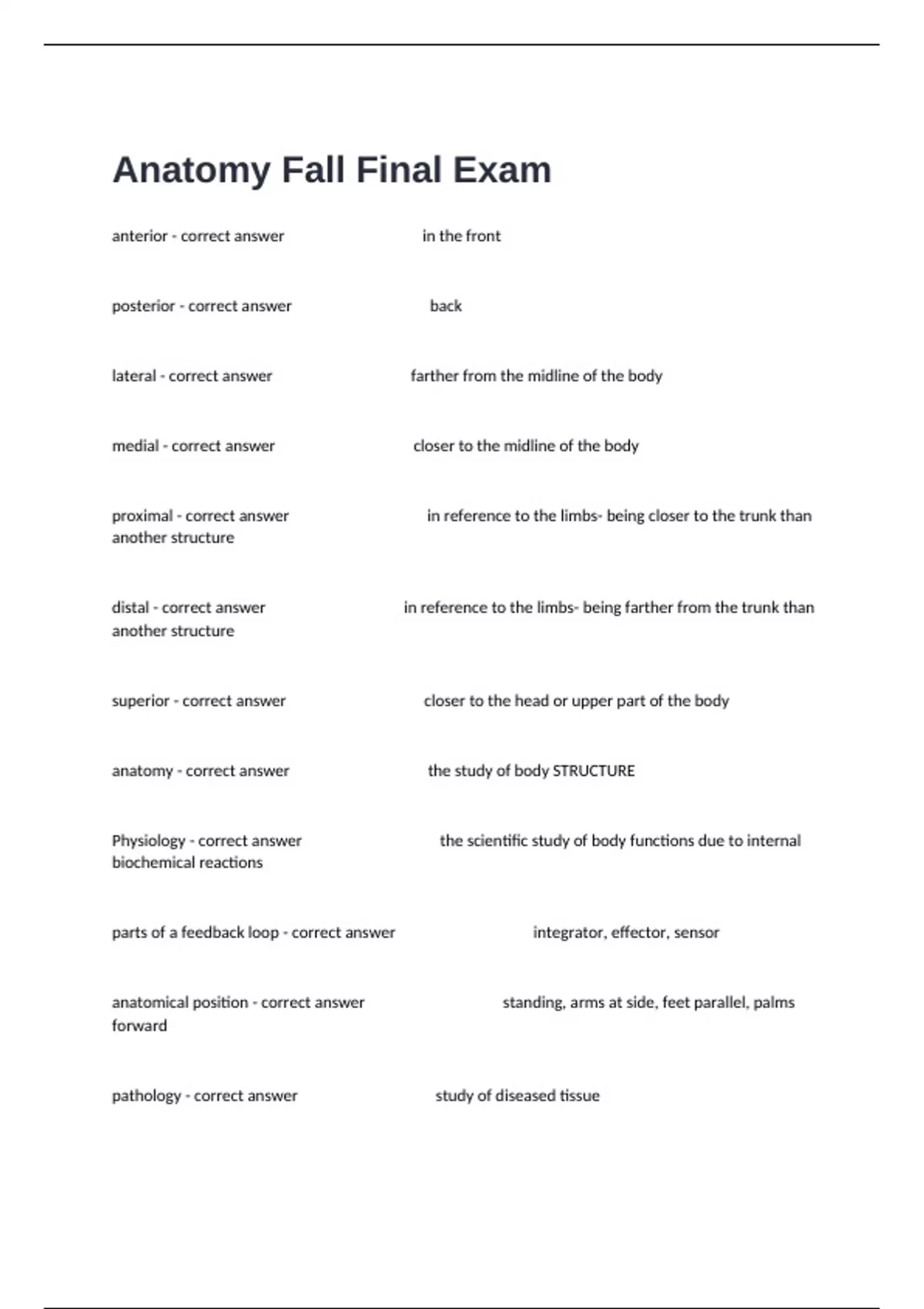 anatomical position - correct answer standing, arms at side, feet parallel, palms