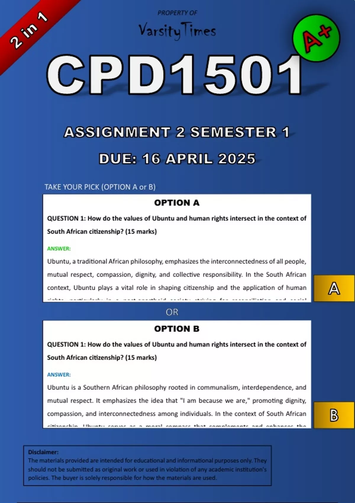 TAKE YOUR PICK (OPTION A or B)
