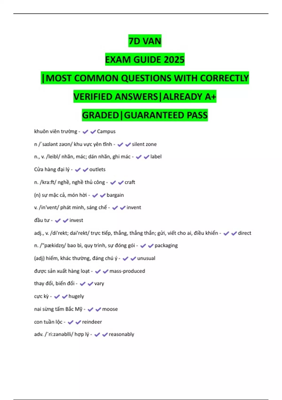 Don't risk your 7D VAN grade — download the verified and updated 2025 quiz and answer guide today! Pass confidently with guaranteed correct answers.