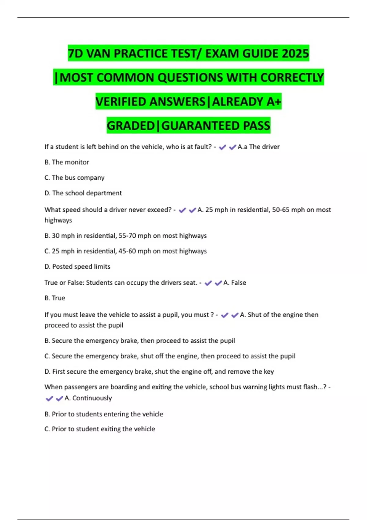 True or False: Students can occupy the drivers seat. - A. False