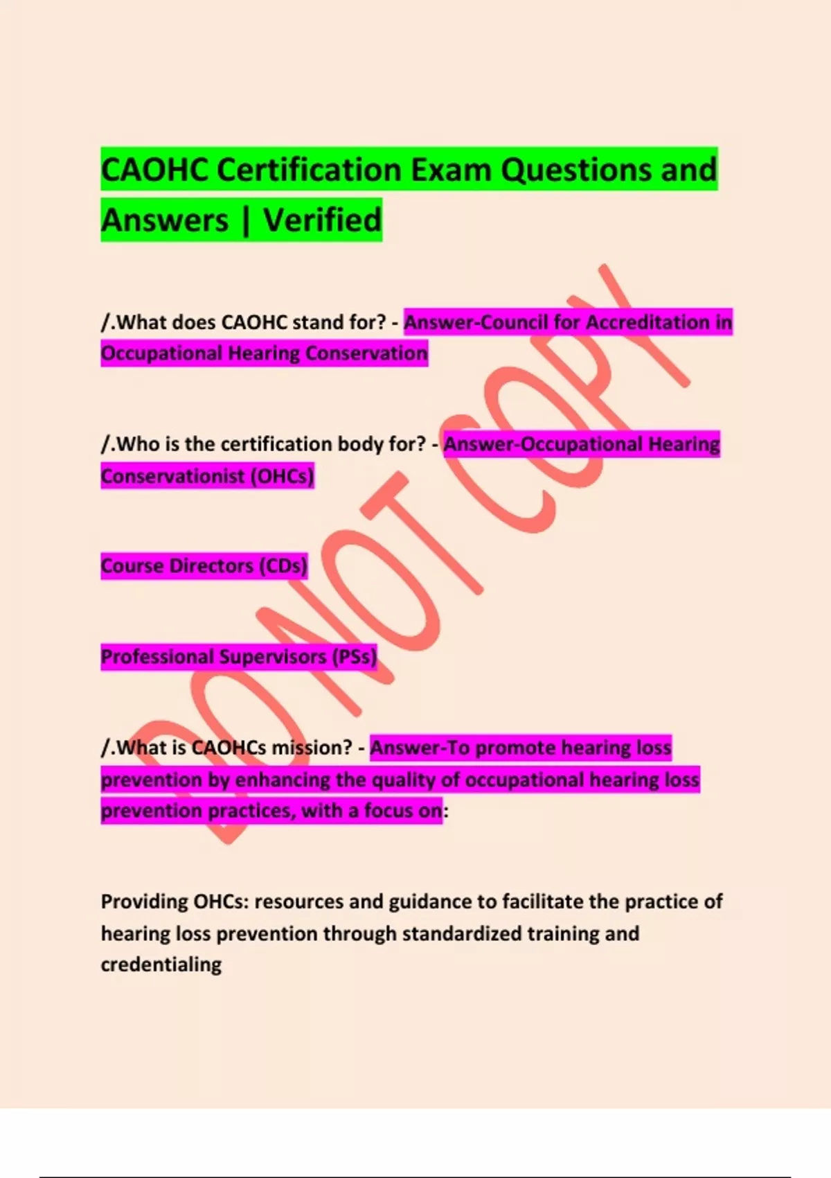 /.What is a CAOHC certified student? - Answer-Certified occupational