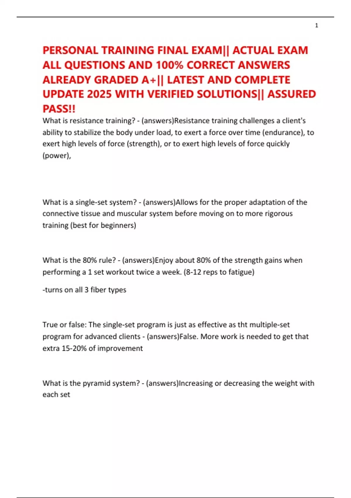 PERSONAL TRAINING FINAL EXAM|| ACTUAL EXAM ALL QUESTIONS AND 100% CORRECT ANSWERS ALREADY GRADED A+|| LATEST AND COMPLETE UPDATE 2025 WITH VERIFIED SOLUTIONS|| ASSURED PASS!!
