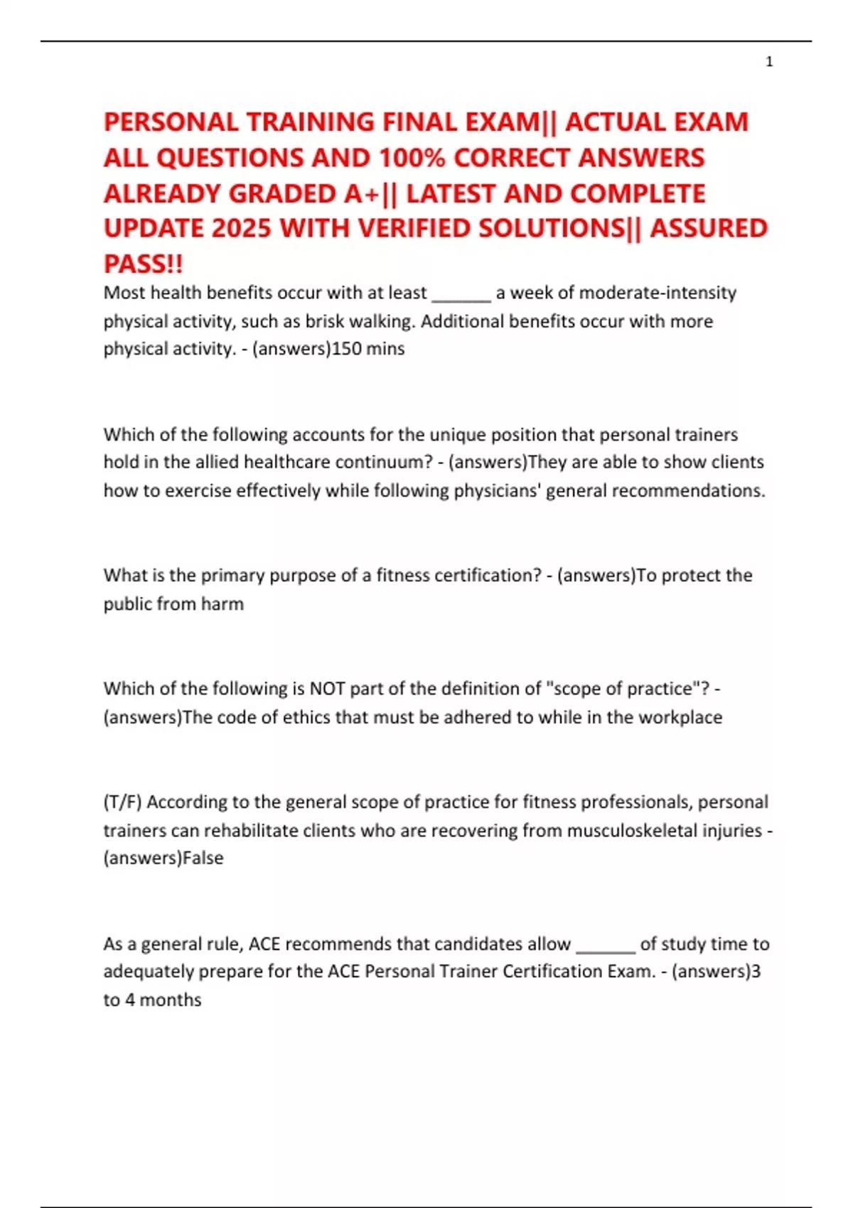adequately prepare for the ACE Personal Trainer Certification Exam. - (answers)3