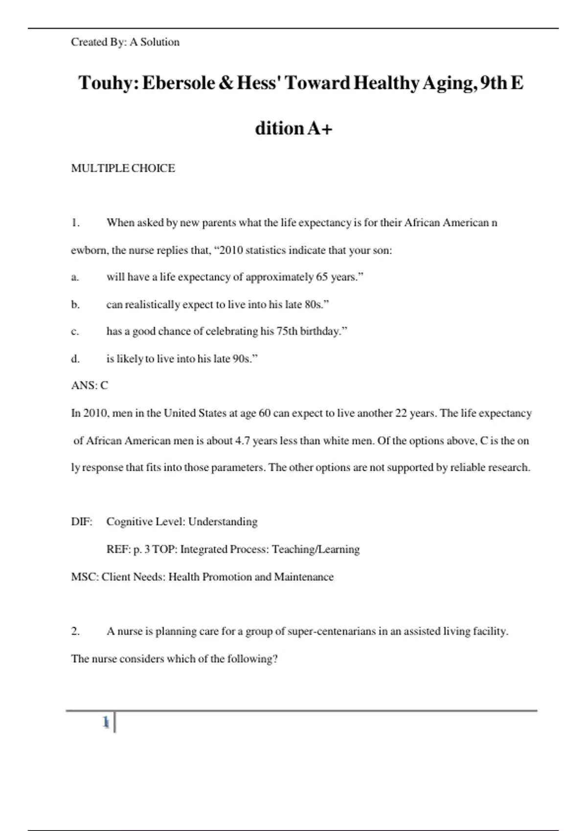 Touhy: Ebersole & Hess' Toward Healthy Aging, 9th E