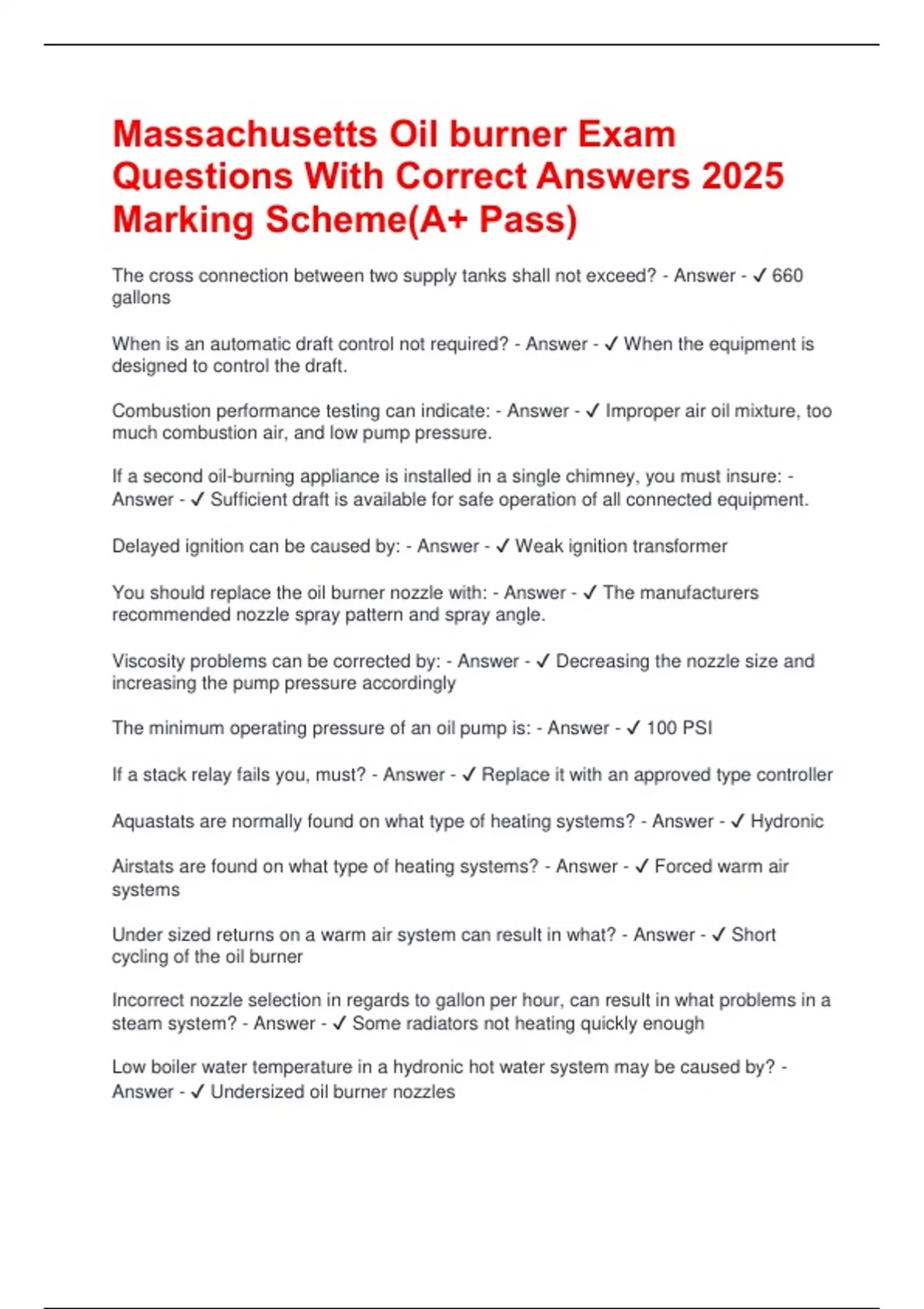 Answer - ✔ Undersized oil burner nozzles