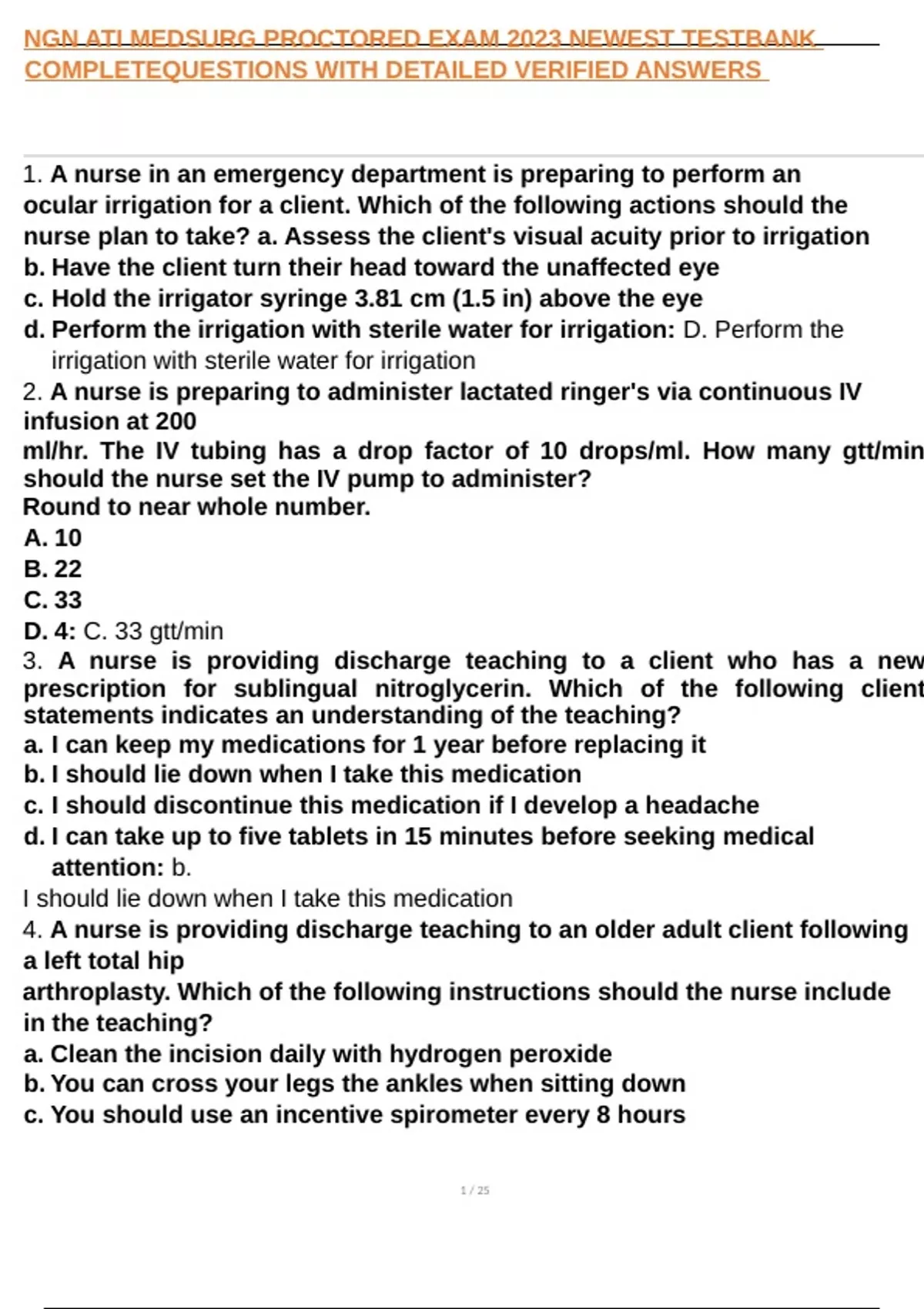 , NGN ATI MEDSURG PROCTORED EXAM 2023 NEWEST TESTBANK