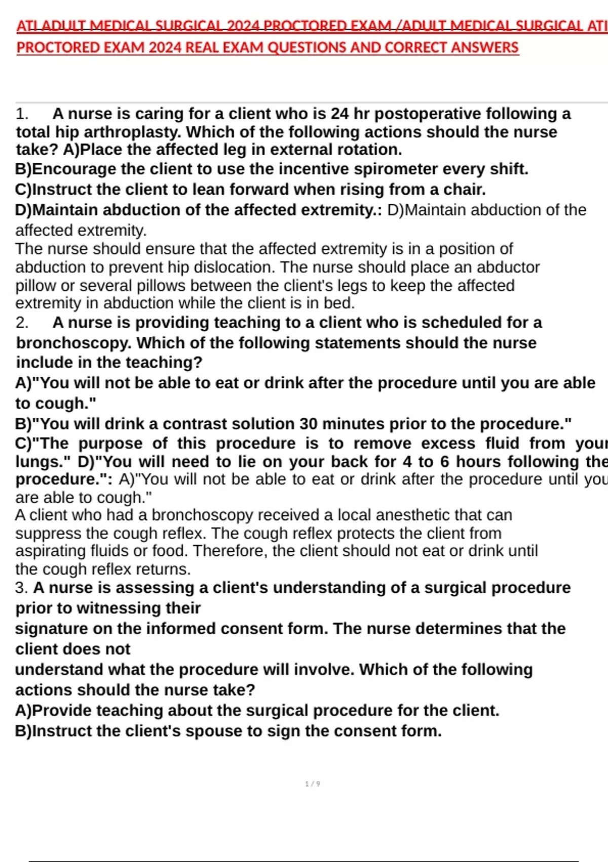 3. A nurse is assessing a client's understanding of a surgical procedure
