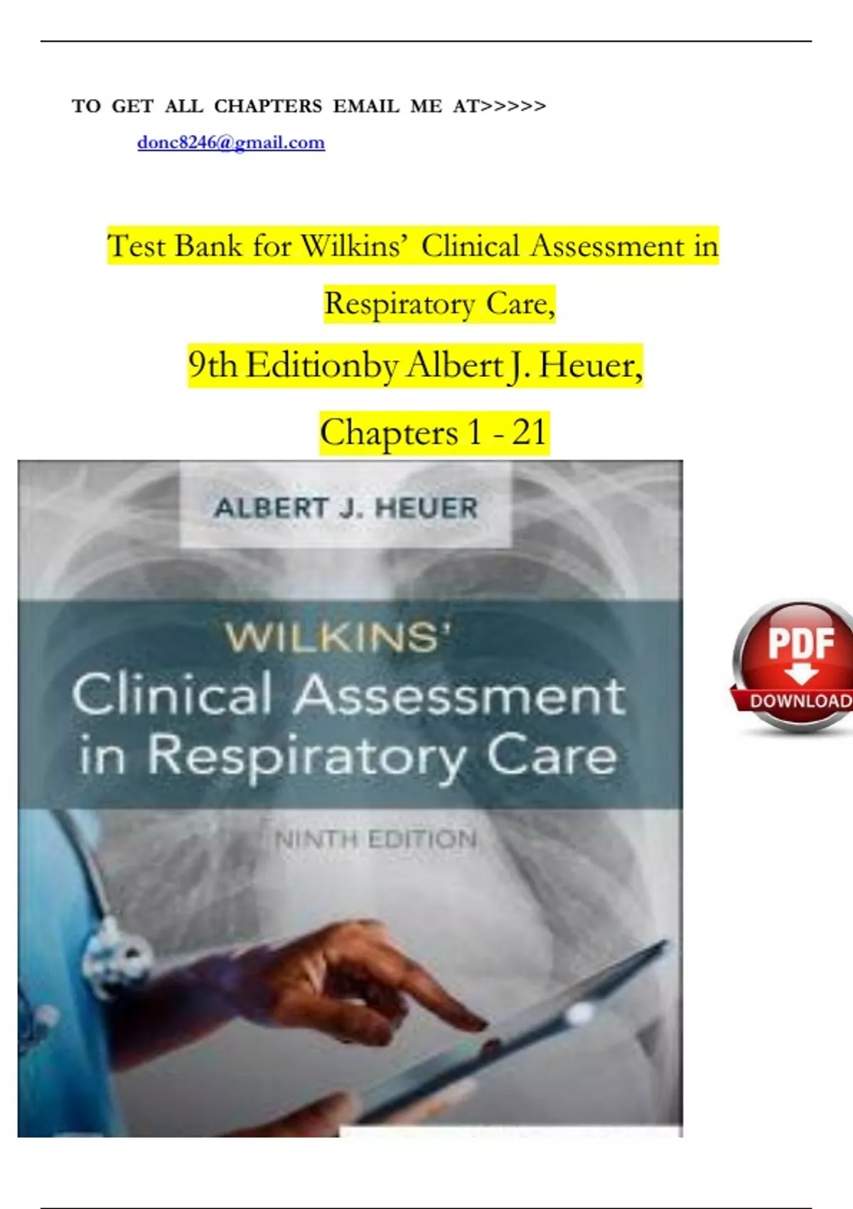 Test Bank For Wilkins’ Clinical Assessment in Respiratory Care, 9th Edition by Albert J. Heuer, Complete Chapters 1 - 21, Updated Newest Version