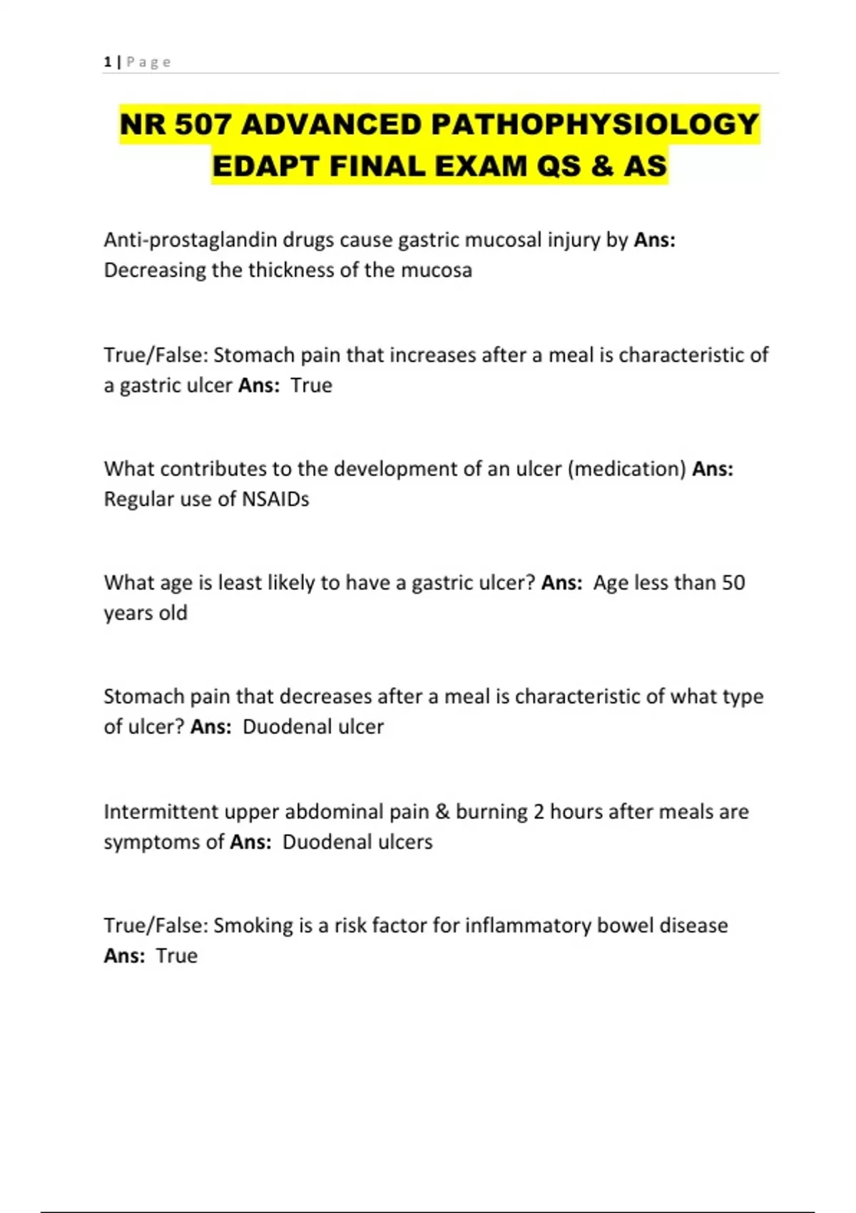 NR 507 ADVANCED PATHOPHYSIOLOGY