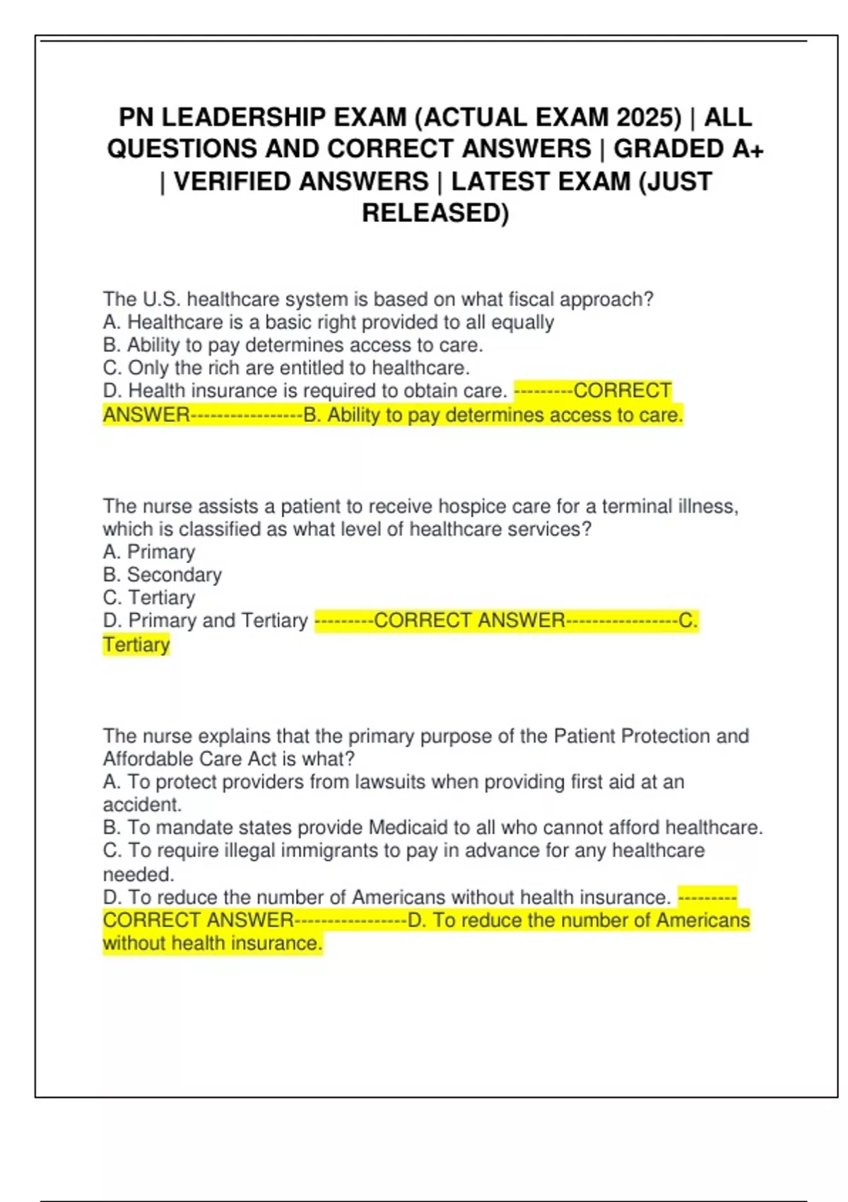 | VERIFIED ANSWERS | LATEST EXAM (JUST