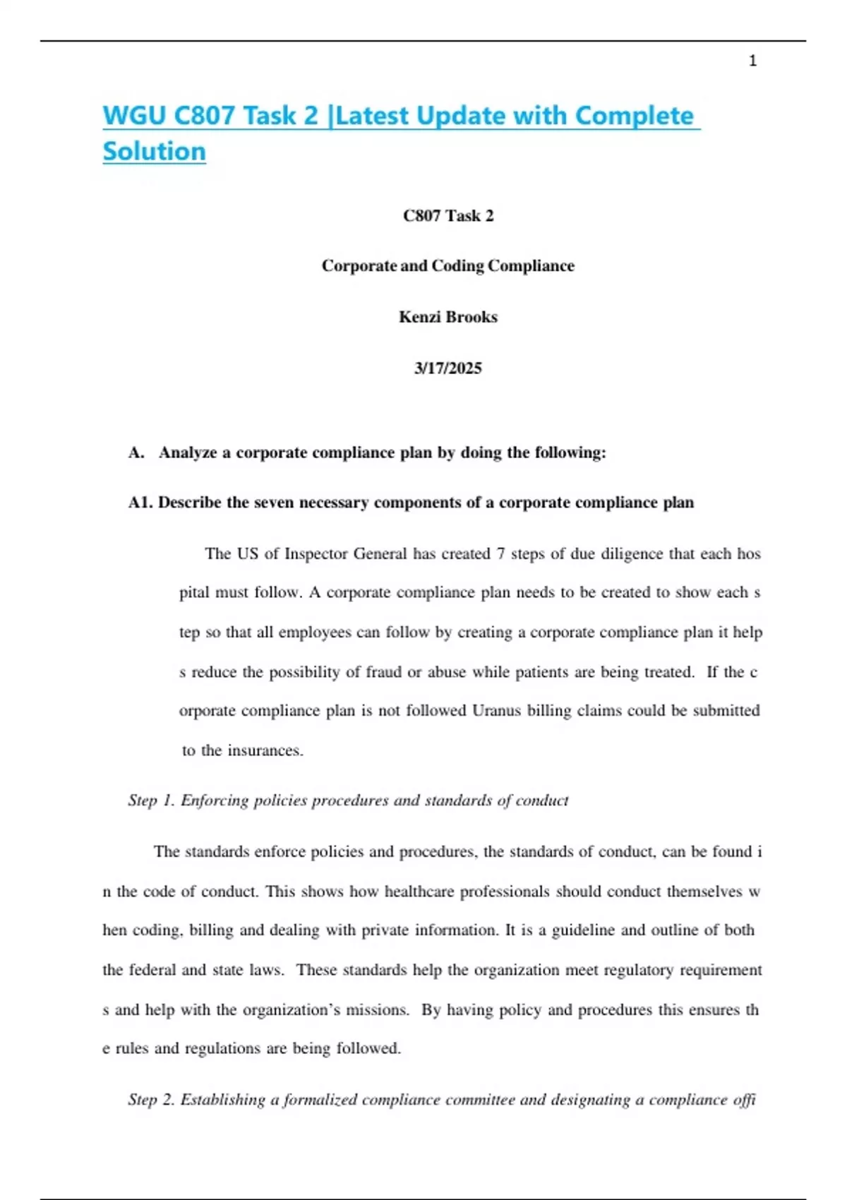A1...Describe..the..seven..necessary..components..of..a..corporate..compliance..plan