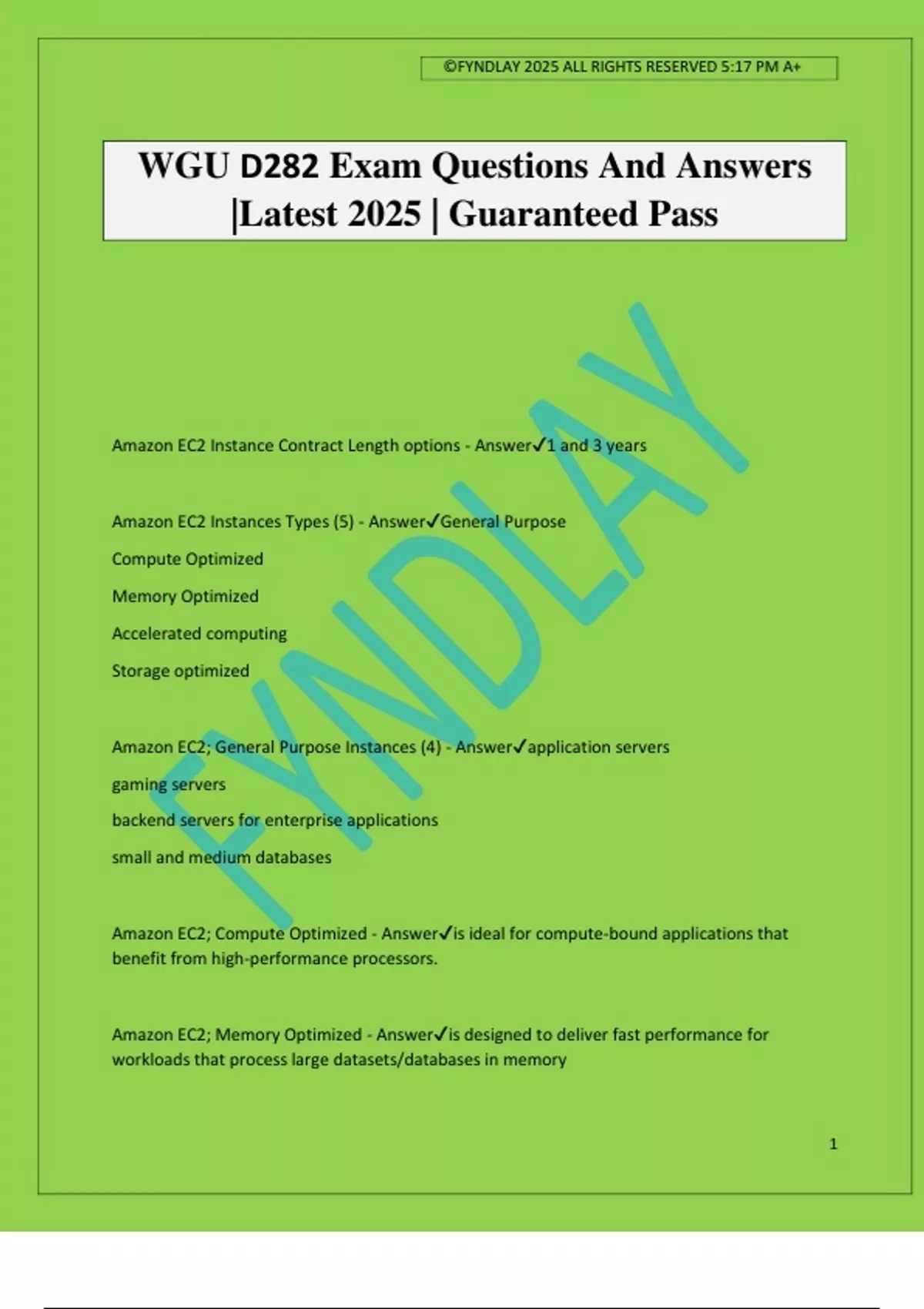 Amazon EC2 Instances Types (5) - Answer✔General Purpose