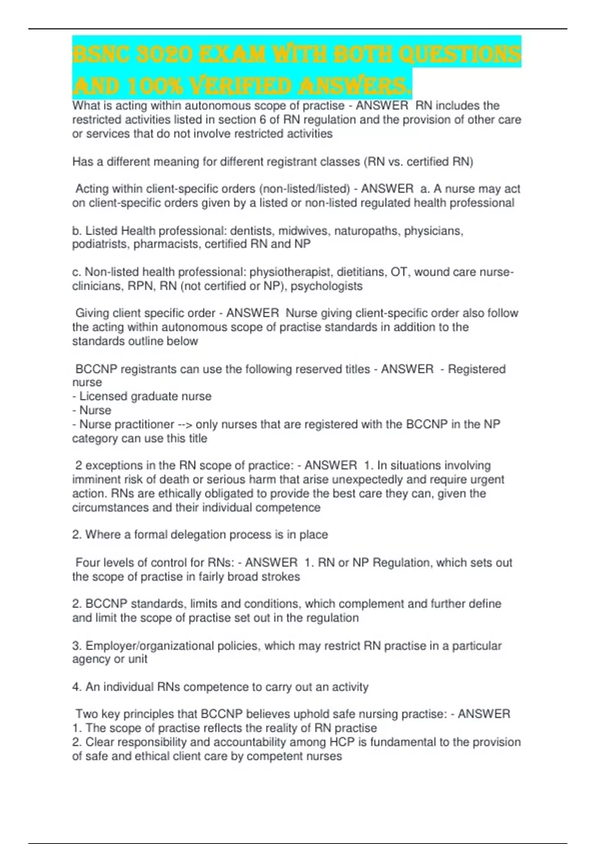 BSNC 3020 EXAM WITH BOTH QUESTIONS AND 100% VERIFIED ANSWERS.