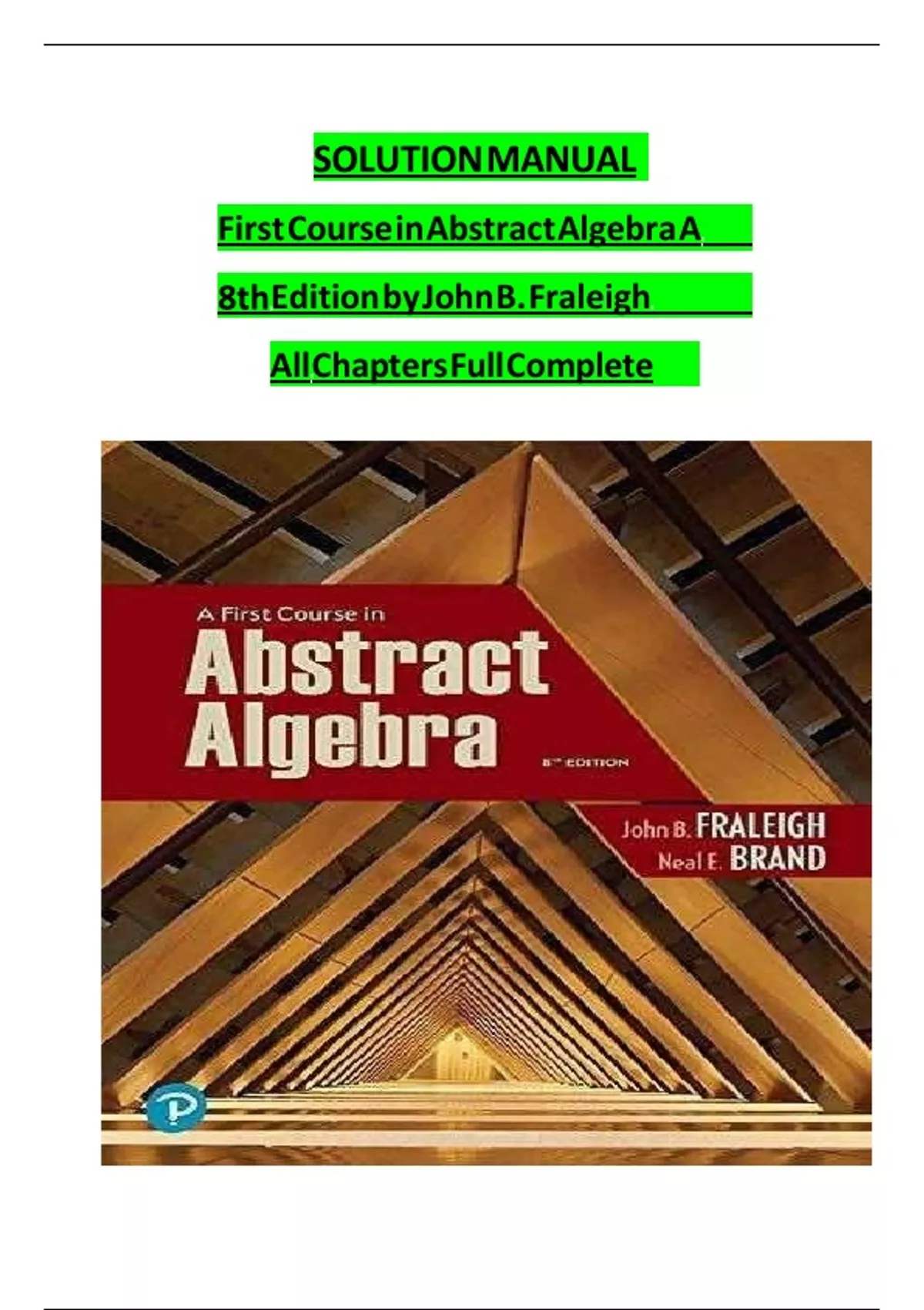 Solution Manual for A First Course in Abstract Algebra (Latest Edition) by John B. Fraleigh – Complete Solutions to All Chapters