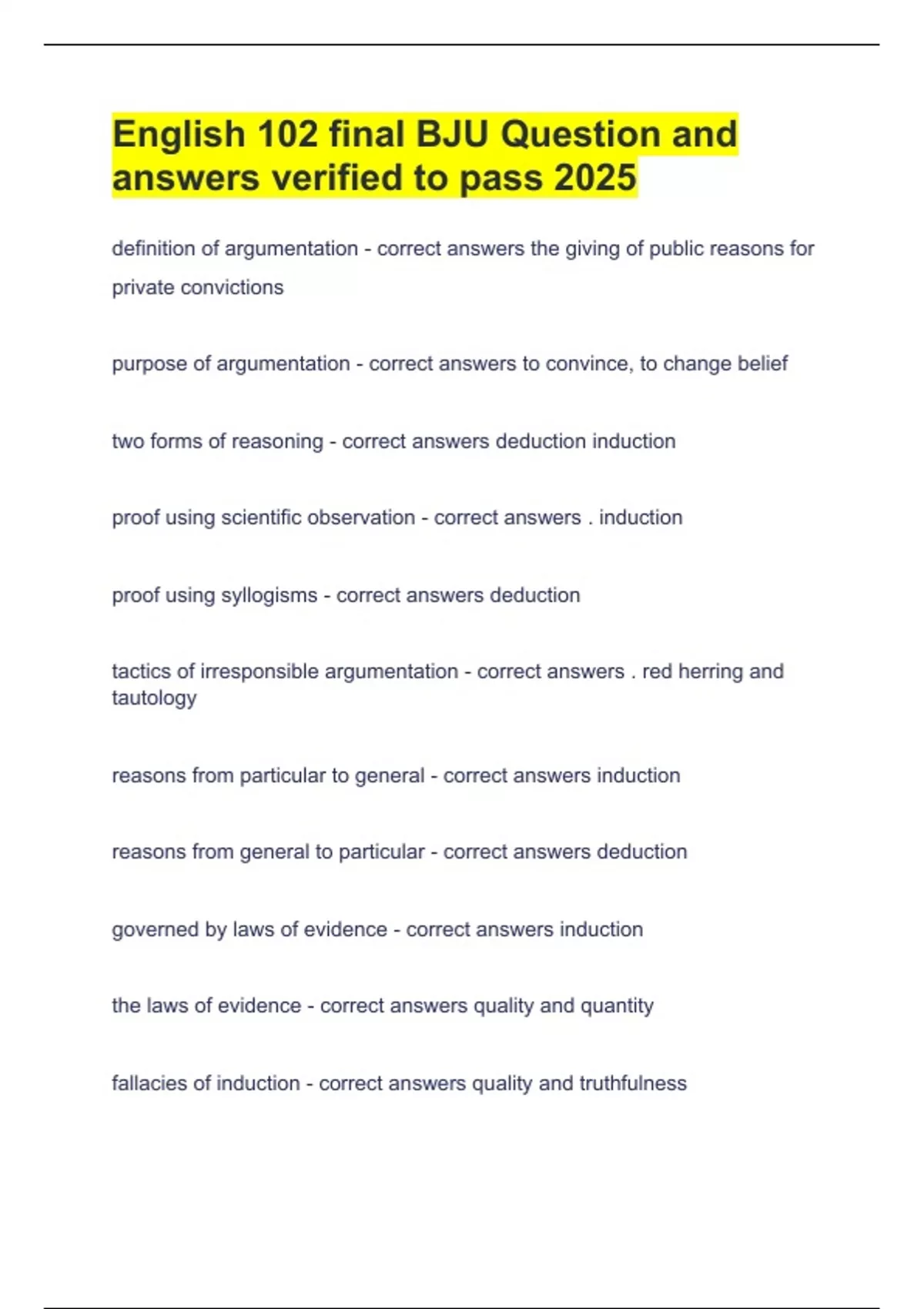 answers verified to pass 2025