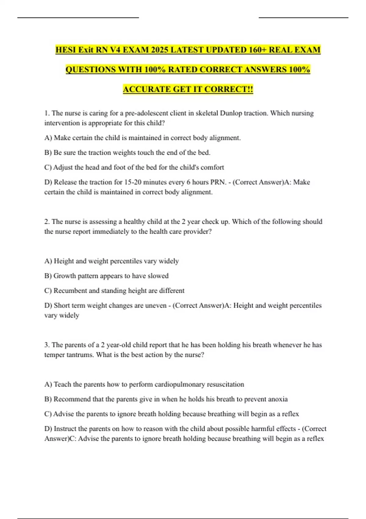 1. The nurse is caring for a pre-adolescent client in skeletal Dunlop traction. Which nursing