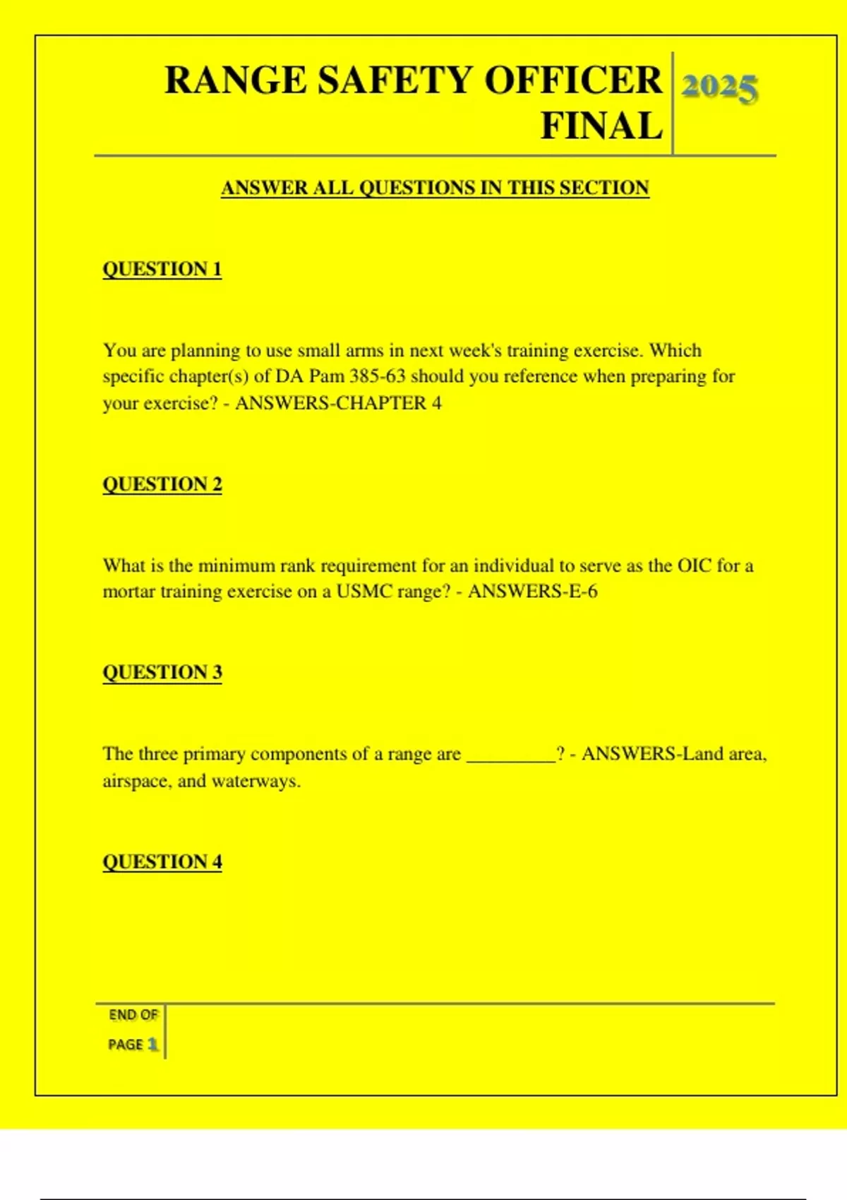 RANGE SAFETY OFFICER FINAL QUESTIONS AND ANSWERS 2025