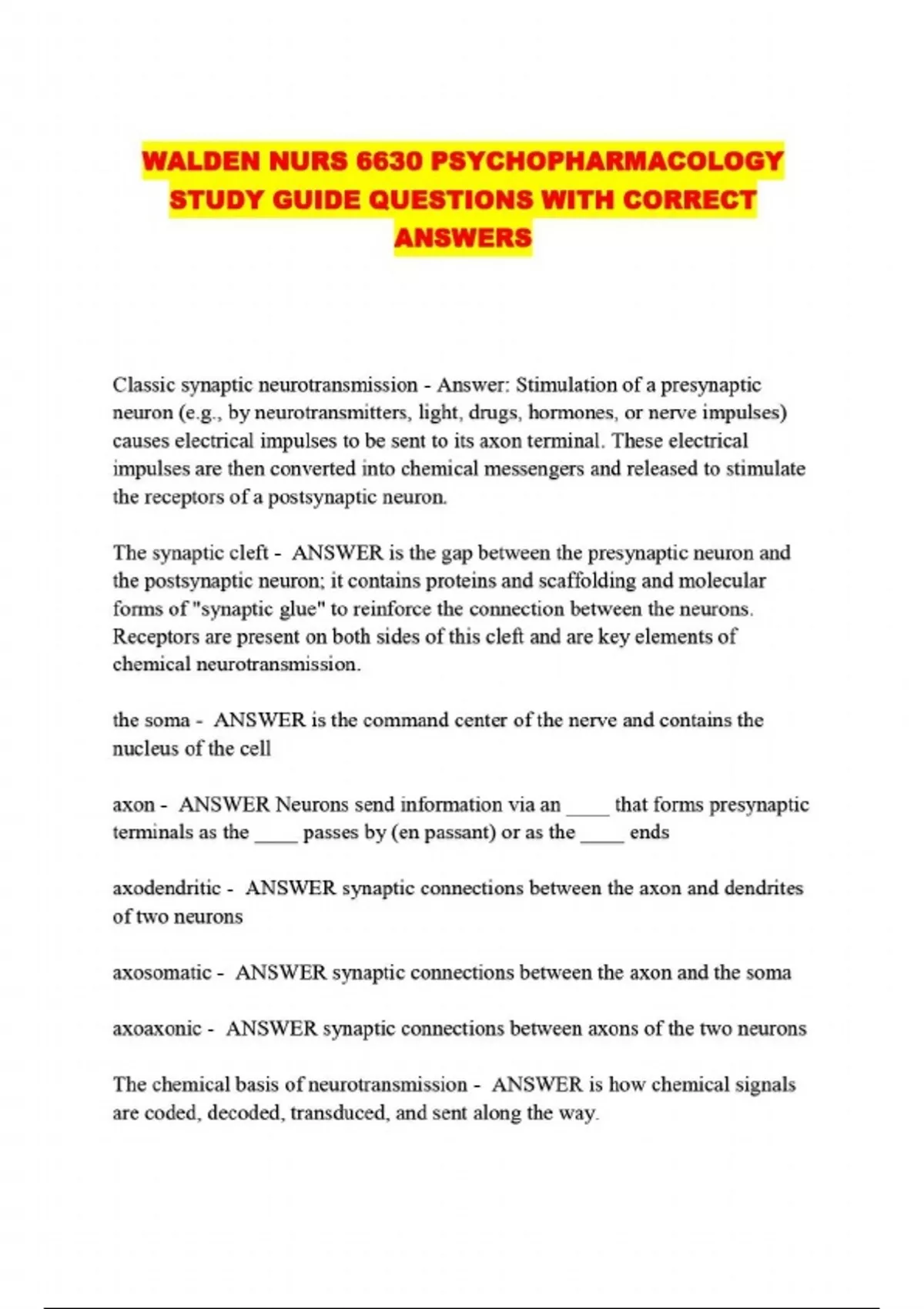 WALDEN NURS 6630 PSYCHOPHARMACOLOGY STUDY GUIDE QUESTIONS WITH CORRECT ANSWERS