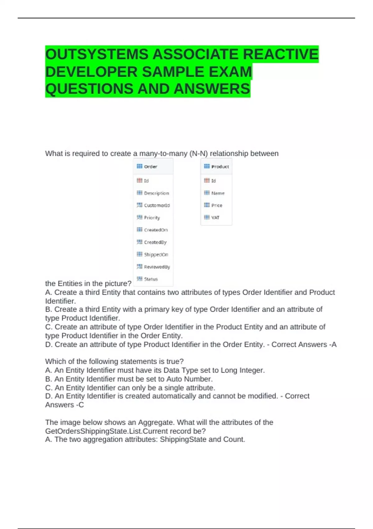 D. Create an attribute of type Product Identifier in the Order Entity. - Correct Answers -A