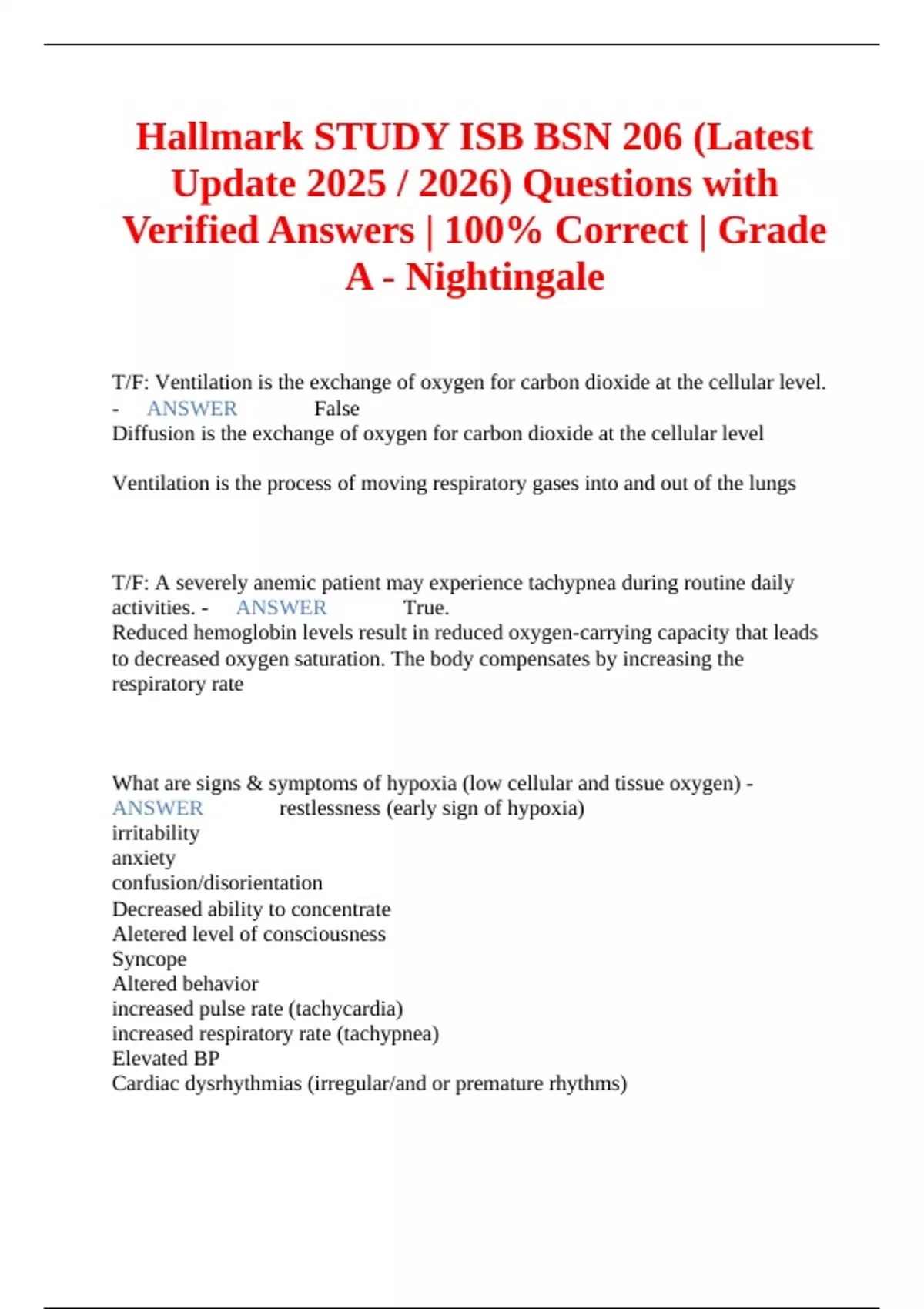Hallmark STUDY ISB BSN 206 (Latest