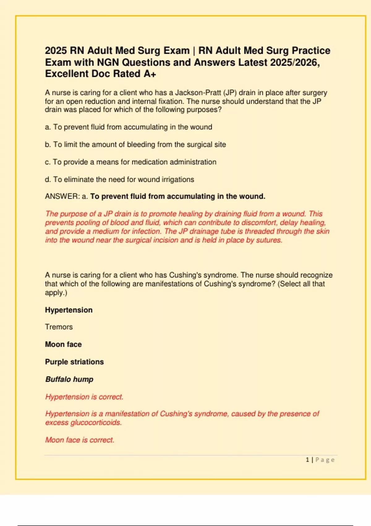 2025 RN Adult Med Surg Exam | RN Adult Med Surg Practice Exam with NGN Questions and Answers Latest 2025/2026, Excellent Doc Rated A+