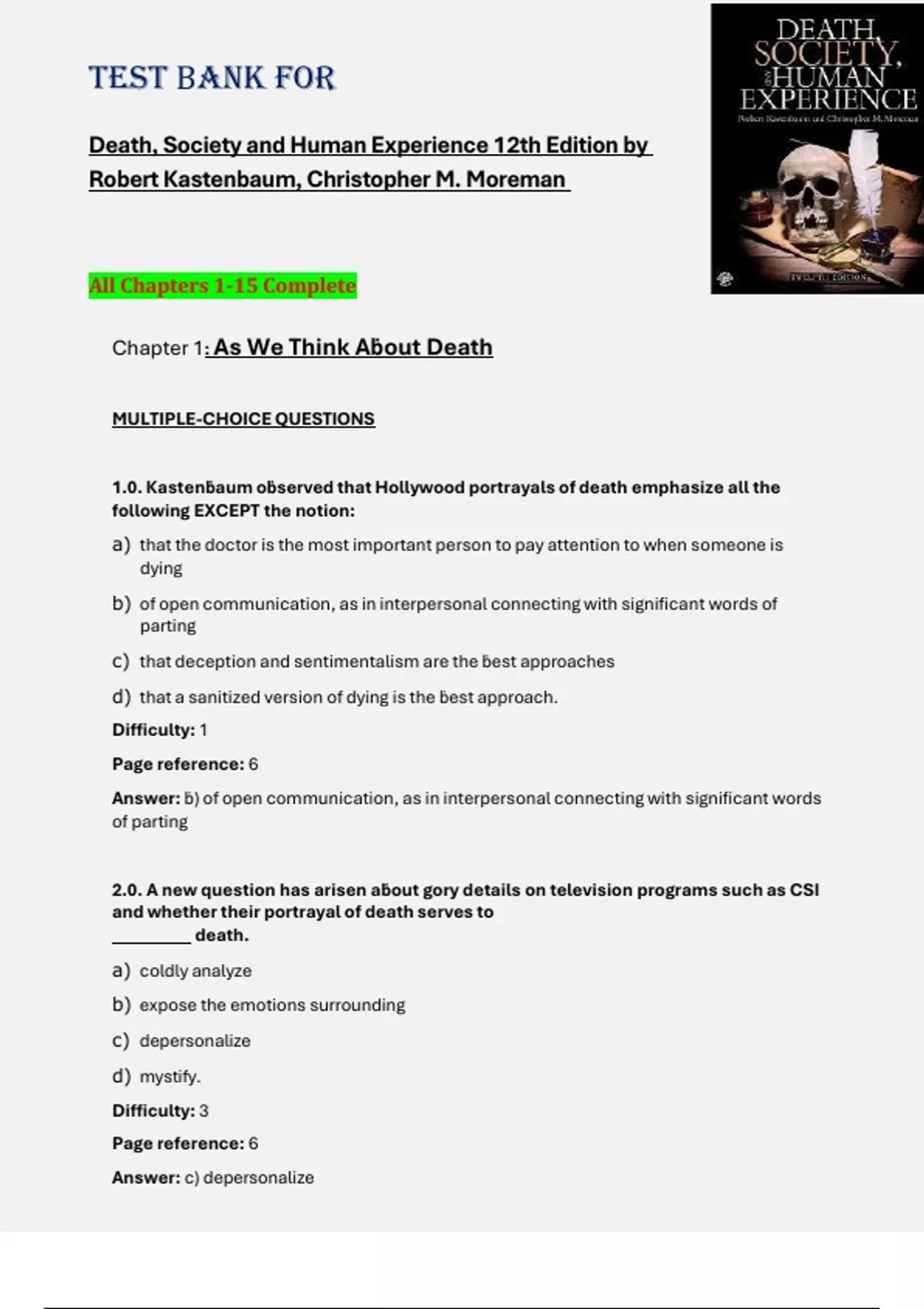 1.0. Kastenḃaum oḃserved that Hollywood portrayals of death emphasize all the