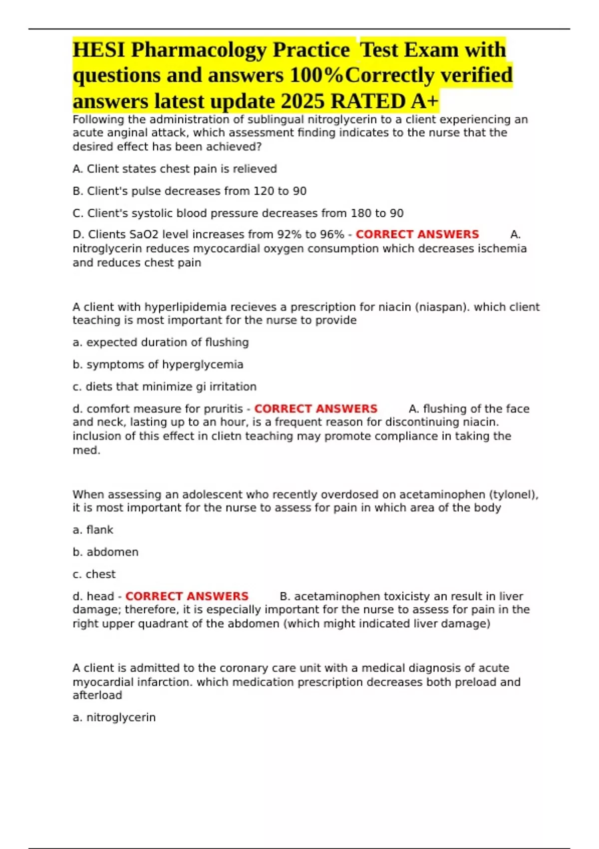 , HESI Pharmacology Practice Test Exam with