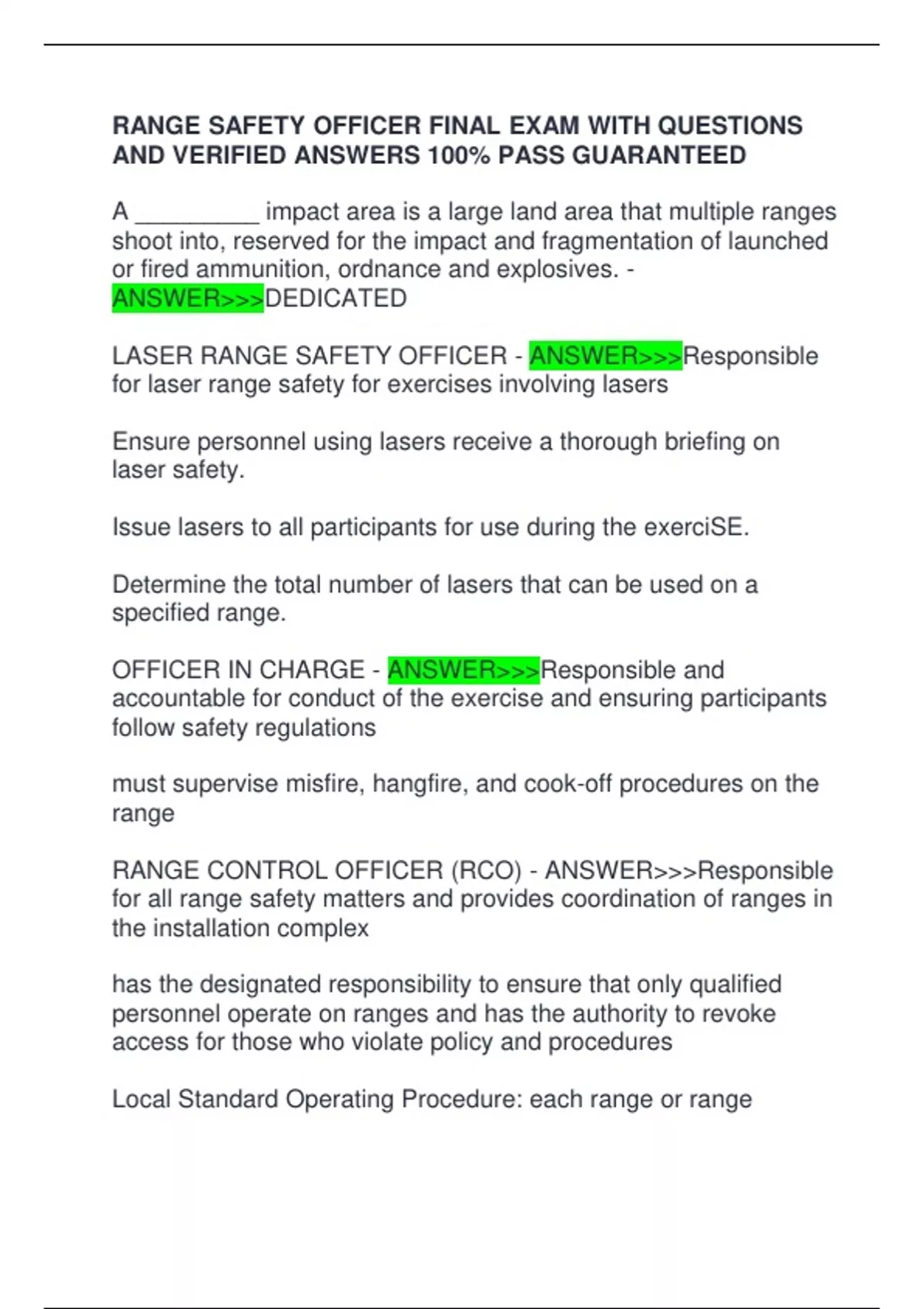 LASER RANGE SAFETY OFFICER - ANSWER>>>Responsible