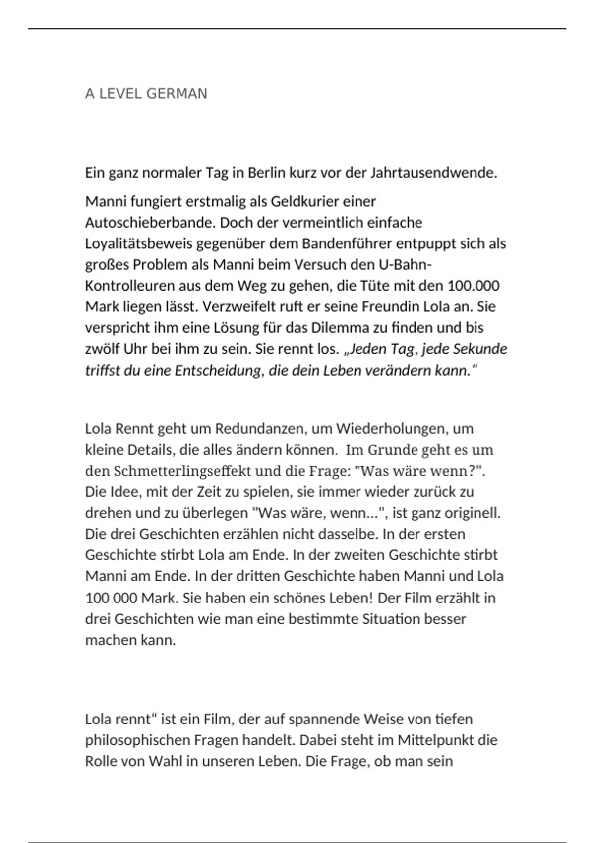 GERMAN A LEVEL revision "Lola Rent"