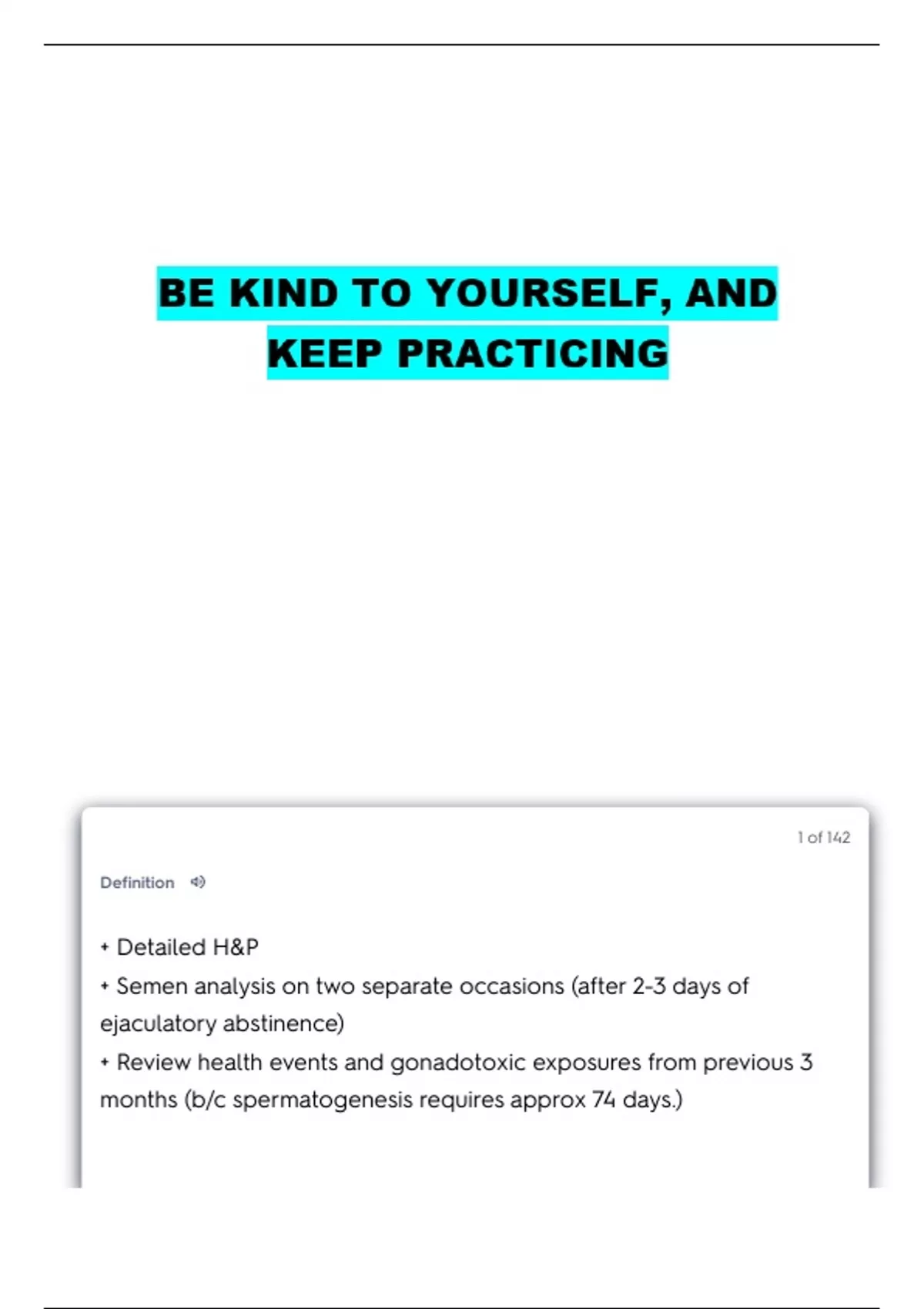 + Semen analysis on two separate occasions (after 2-3 days of