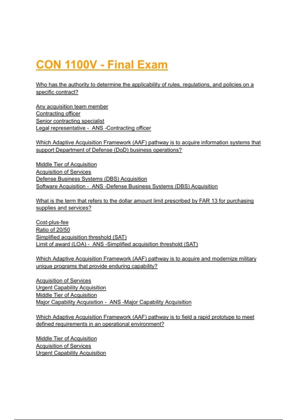 Software Acquisition - ANS -Defense Business Systems (DBS) Acquisition