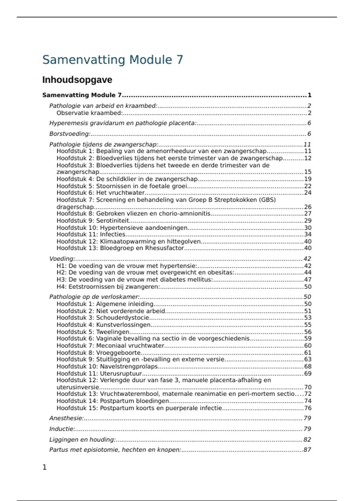 Volledige samenvatting module 7 vroedkunde. Het deel anesthesie zit hier niet in maar was ook niet belangrijk voor het examen, dit deel kan je gewoon eens goed overlopen.