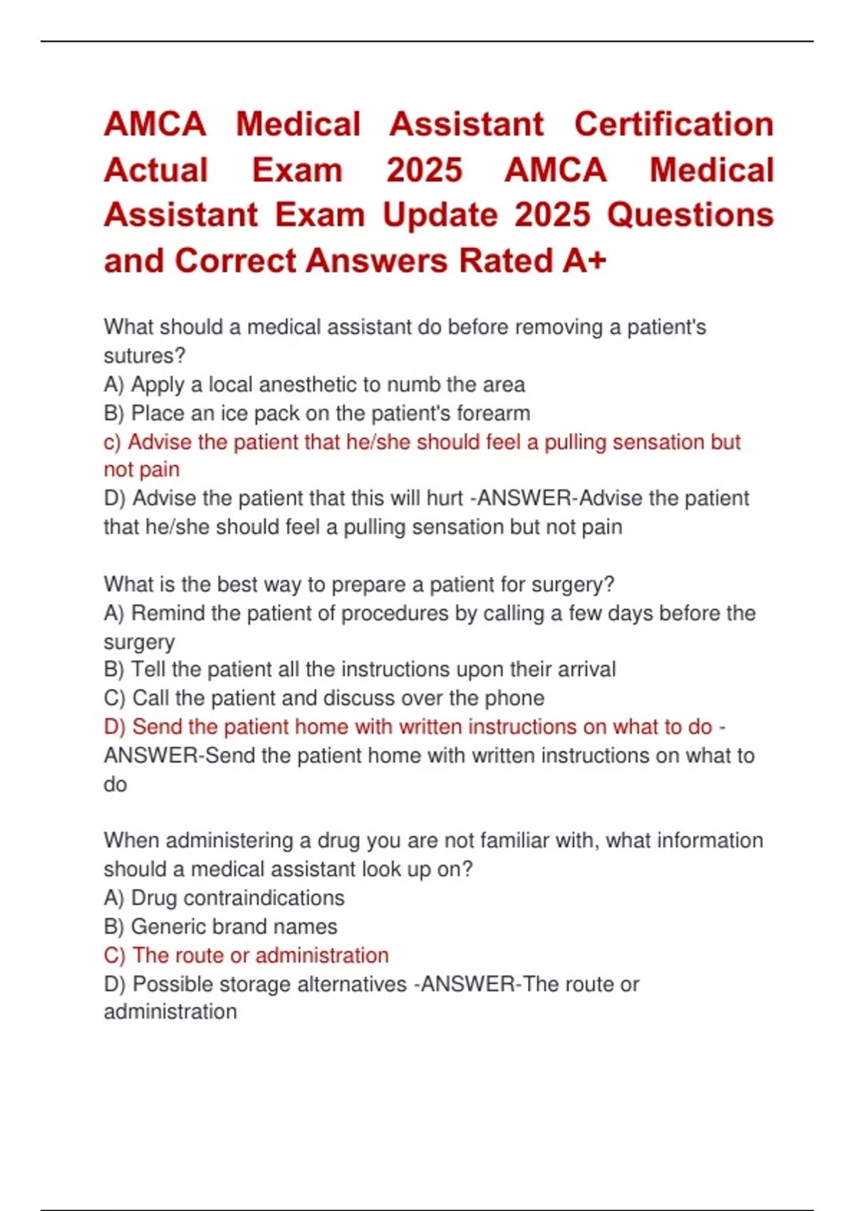 AMCA Medical Assistant Certification Actual Exam 2025 AMCA Medical Assistant Exam Update 2025 Questions and Correct Answers Rated A+