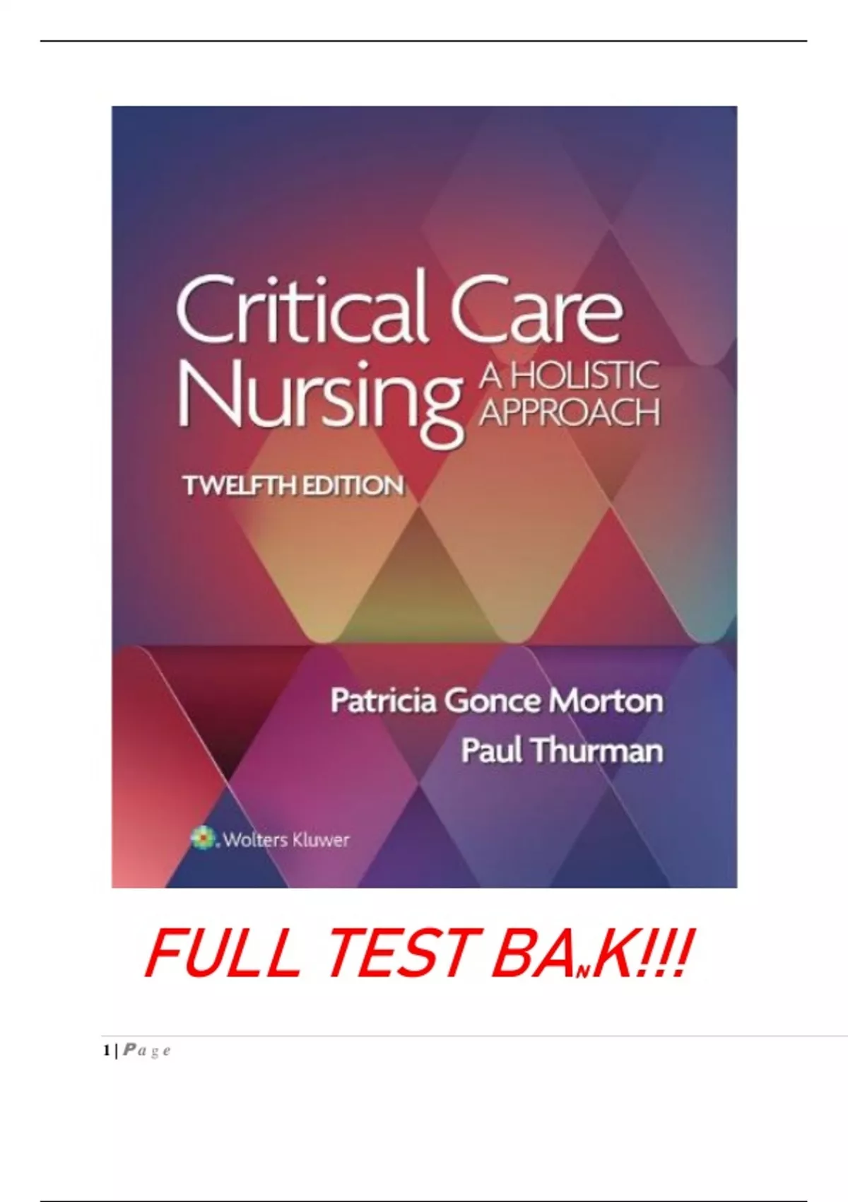 , Critical Care Nursing A Holistic Approach 12th Edition Test Bank