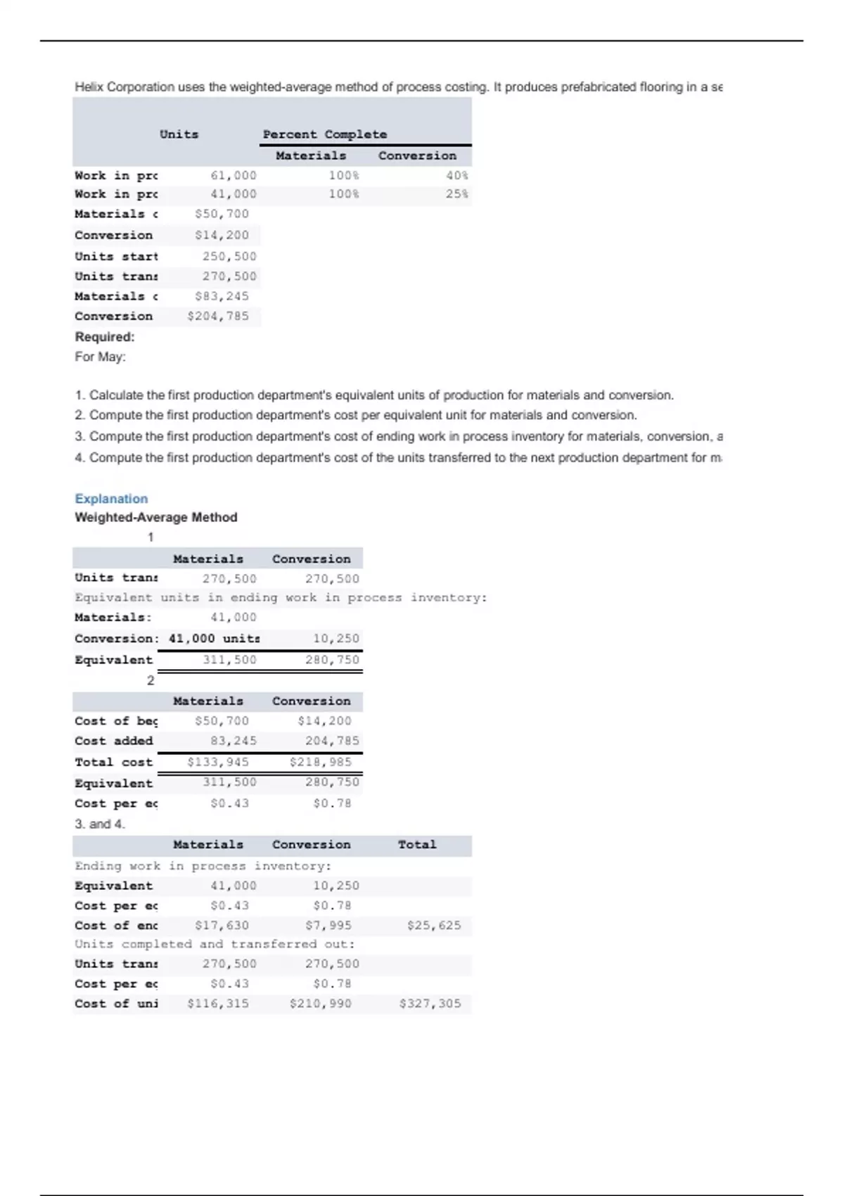 Helix Corporation uses the weighted-average method of process costing. It produces prefabricated flooring in a series of steps carried o
