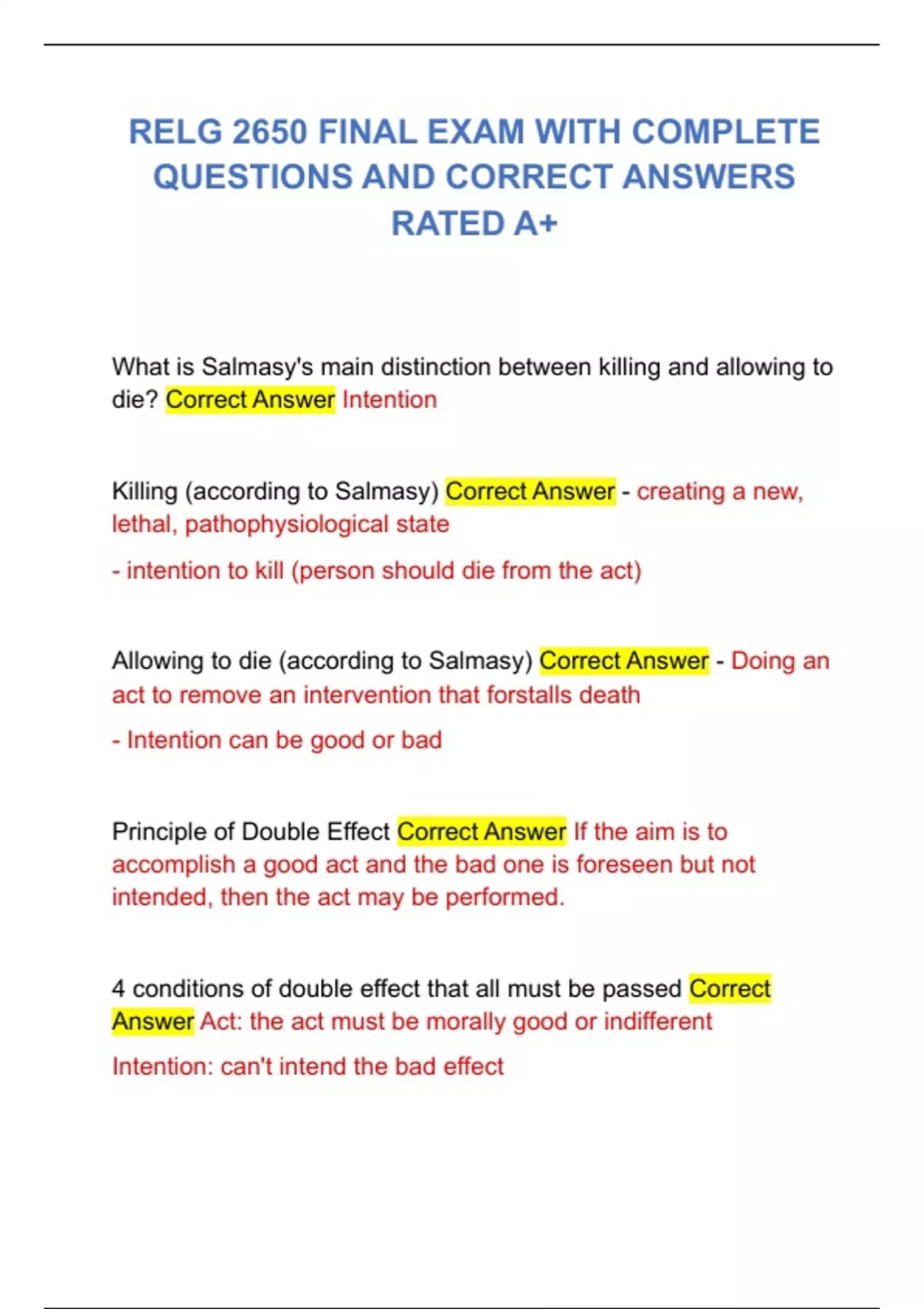 RELG 2650 FINAL EXAM WITH COMPLETE QUESTIONS AND CORRECT ANSWERS RATED A+