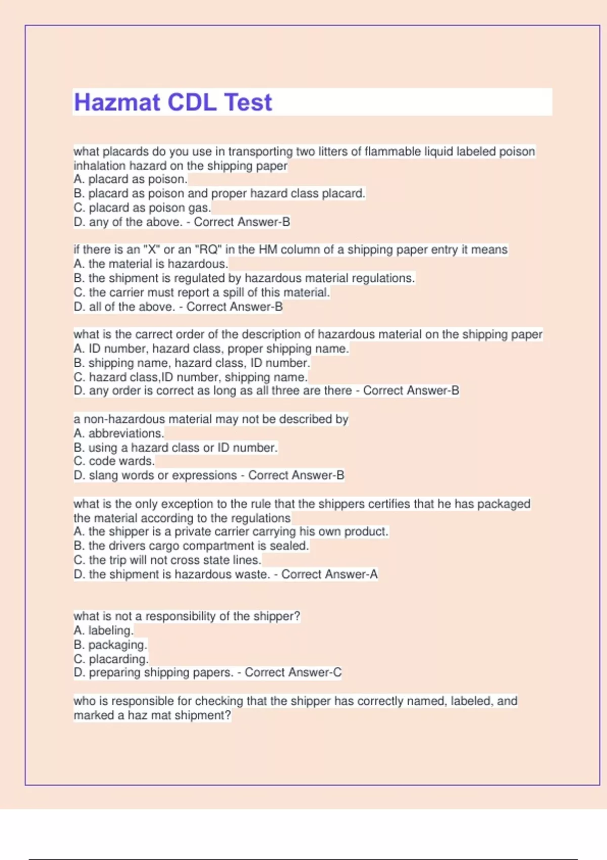 D. the shipment is hazardous waste. - Correct Answer-A