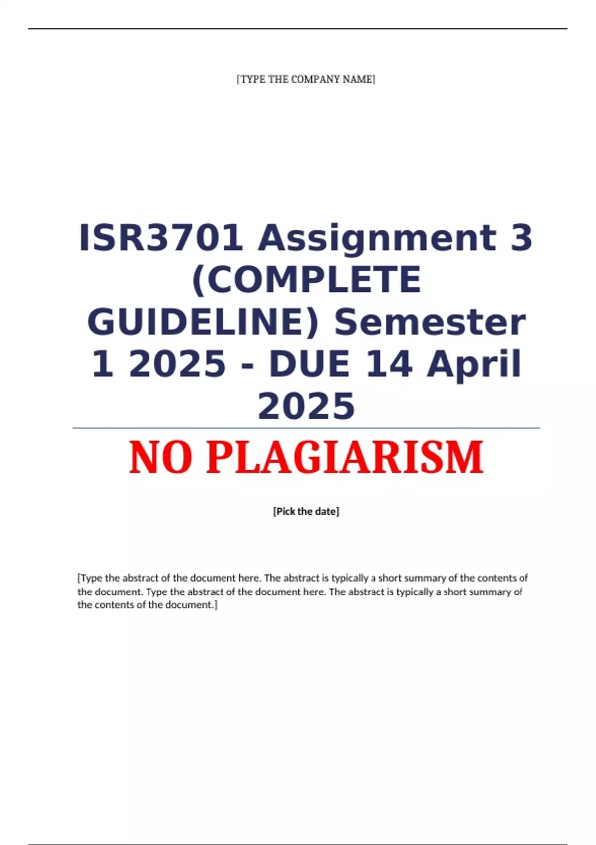 , ISR3701 Assignment 1 Semester 1 2025 - Due April QUESTIONS WITH