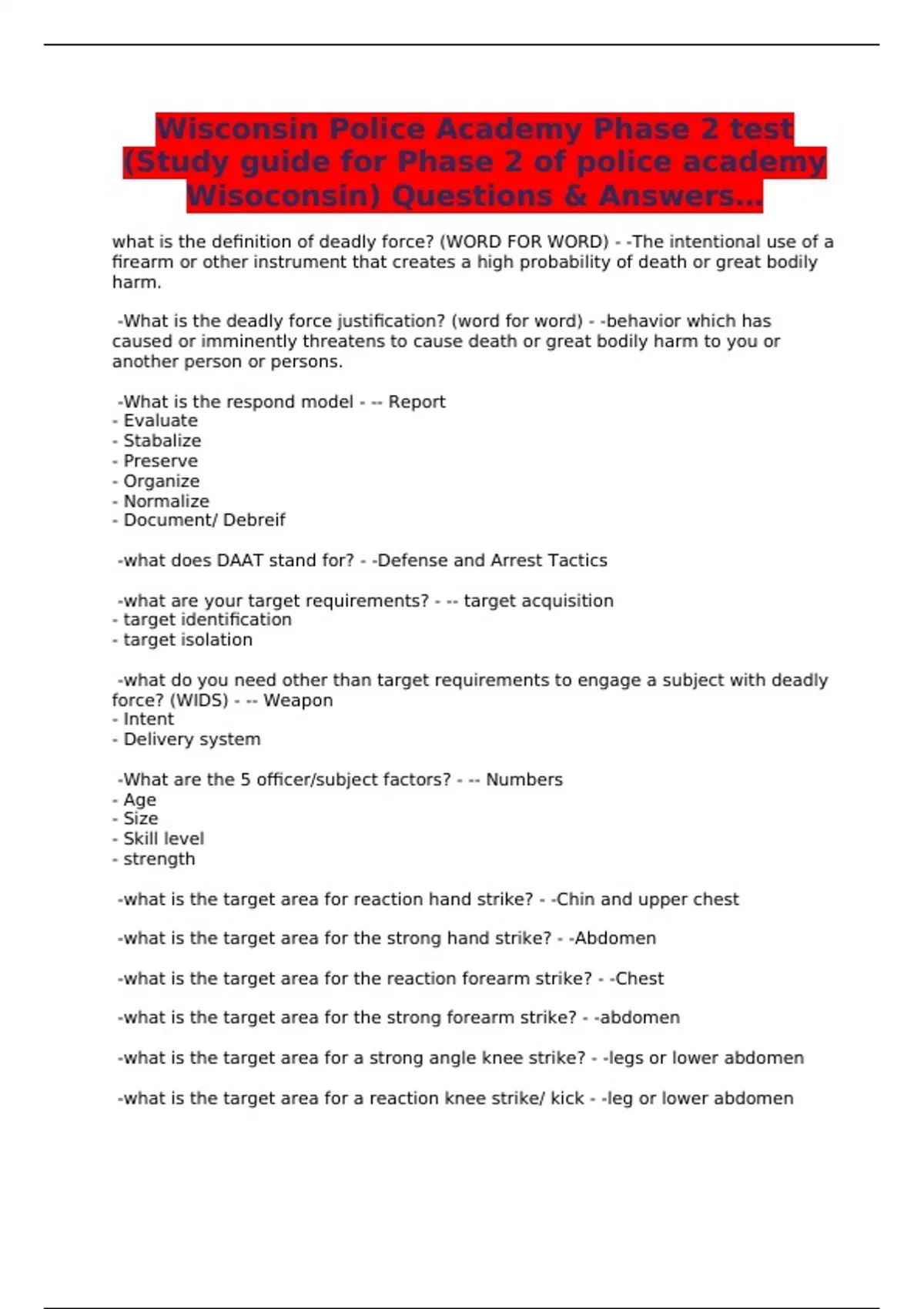 Wisconsin Police Academy Phase 2 test (Study guide for Phase 2 of police academy Wisoconsin) Questions & Answers…