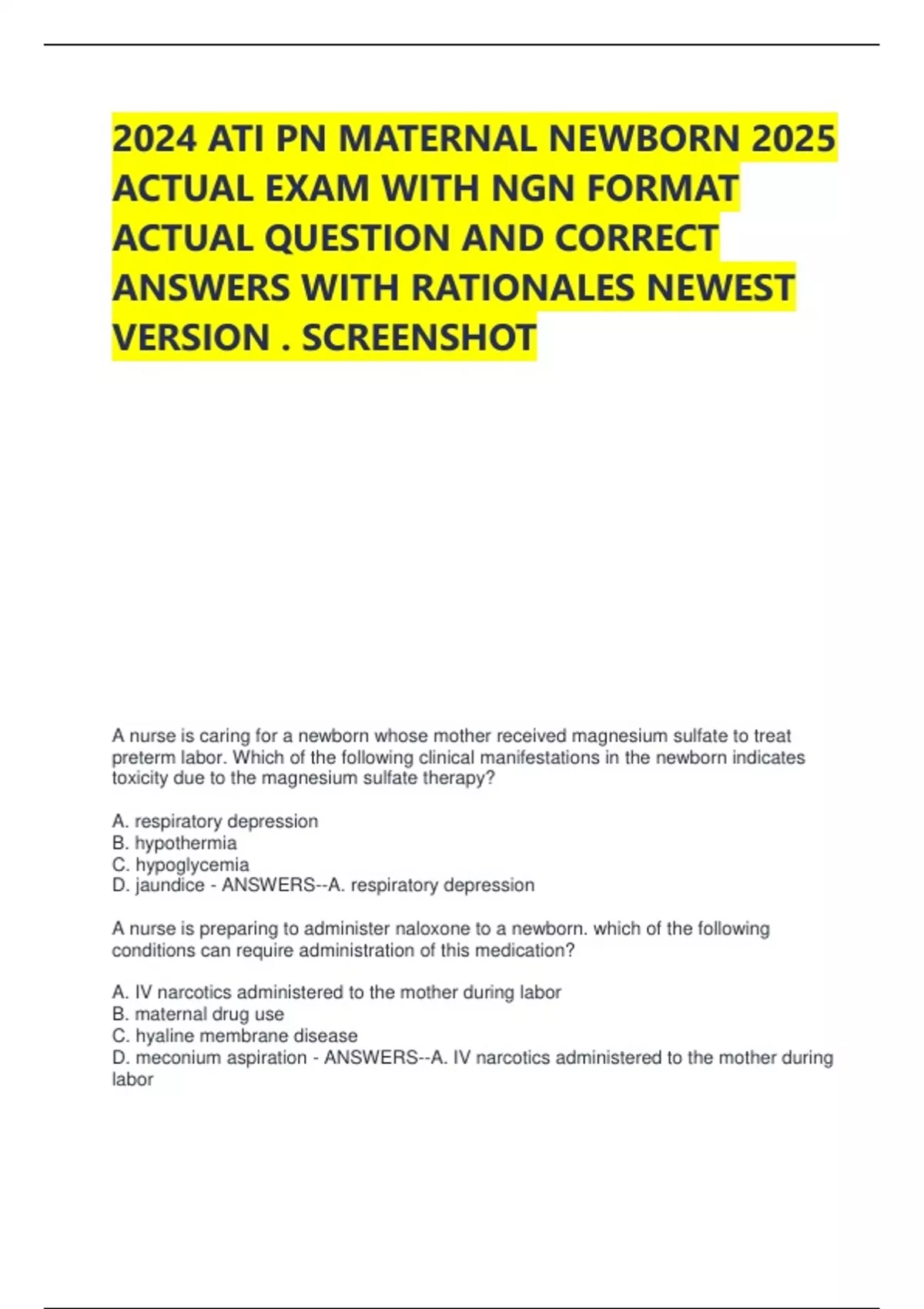 D. meconium aspiration - ANSWERS--A. IV narcotics administered to the mother during