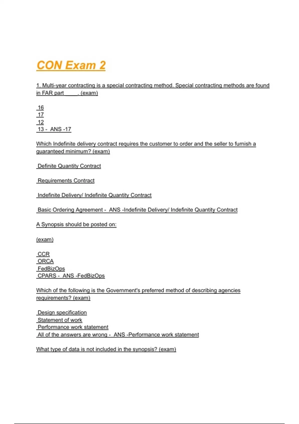 All of the answers are wrong - ANS -Performance work statement